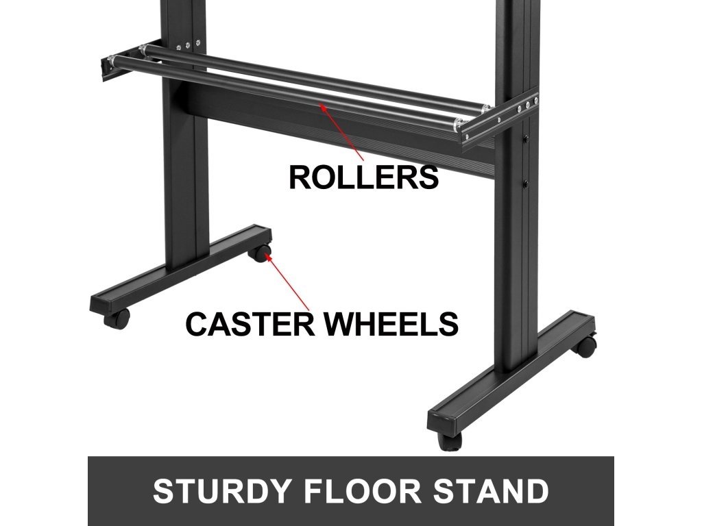 Nehéz fémlemezből készült padlóállványszerkezet, 4 görgővel felszerelve a kényelmes mozgatás érdekében.