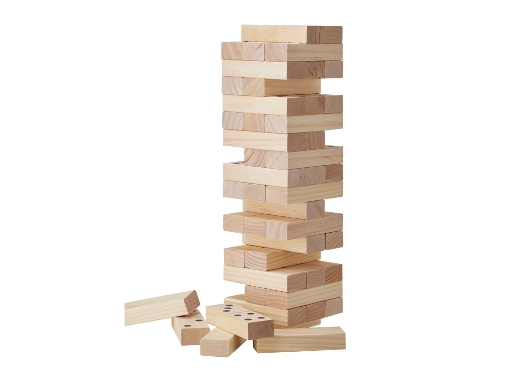 | Kategória: | Hra na skladanie obrovských drevených blokov veže |