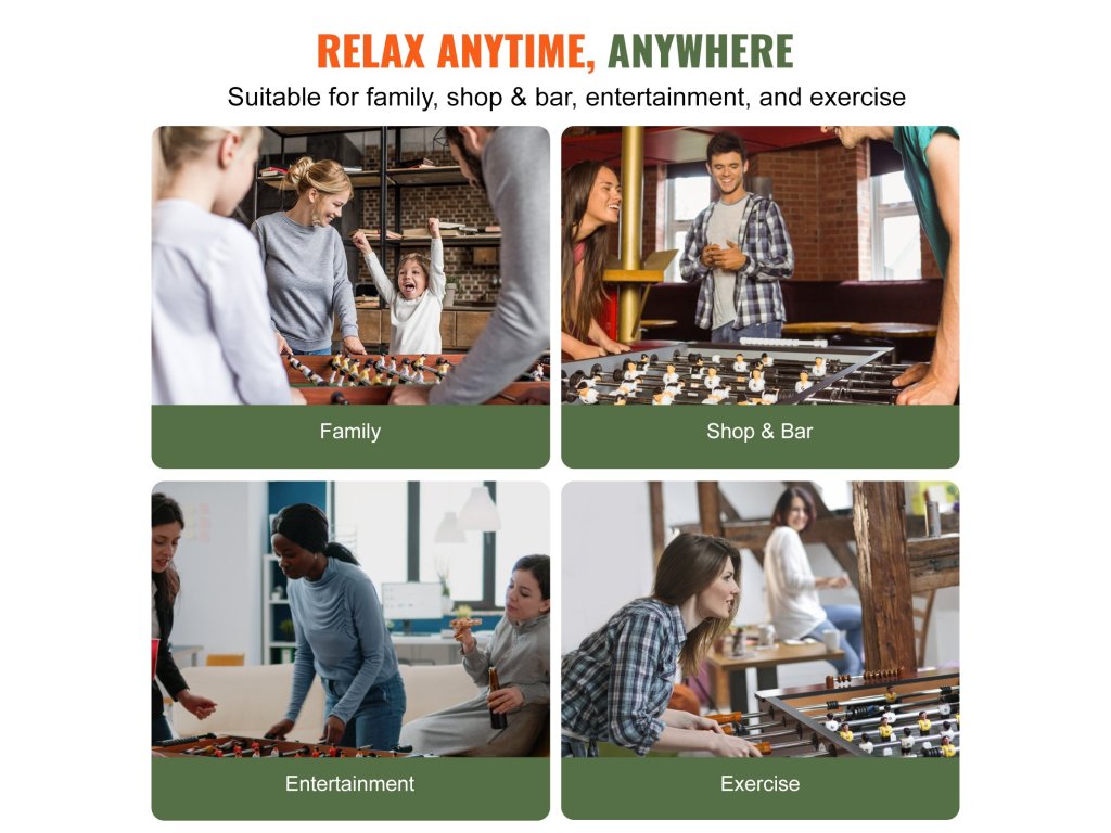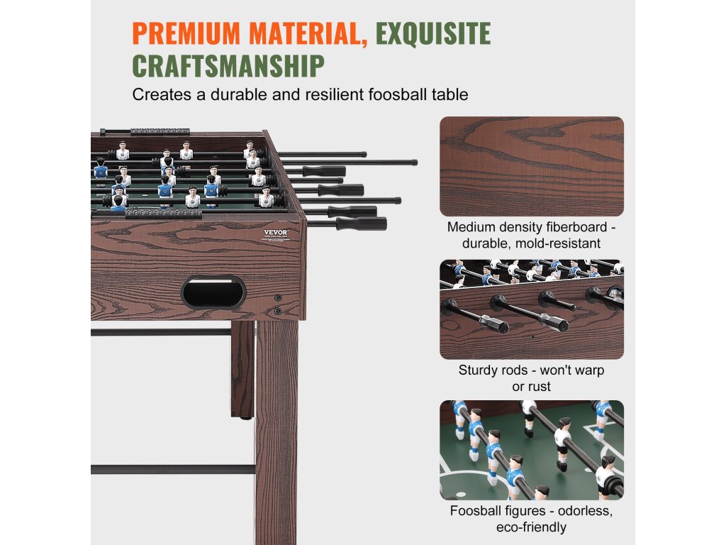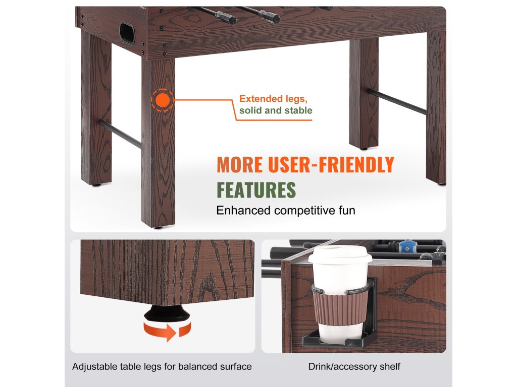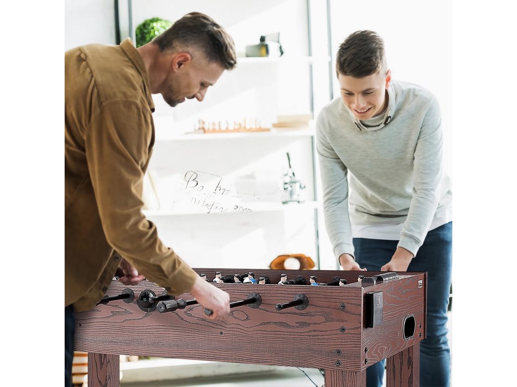 Az asztali labdarúgás gyors átmenetet biztosít a támadásra és a védekezésre, izgalmas összecsapásokat kínál, és próbára teszi a játékosok gyors reflexeit és a kéz-agy koordinációt. Rendkívül interaktív, 2-4 játékos számára alkalmas, a szabadidő és a szórakozás terét teremtve.