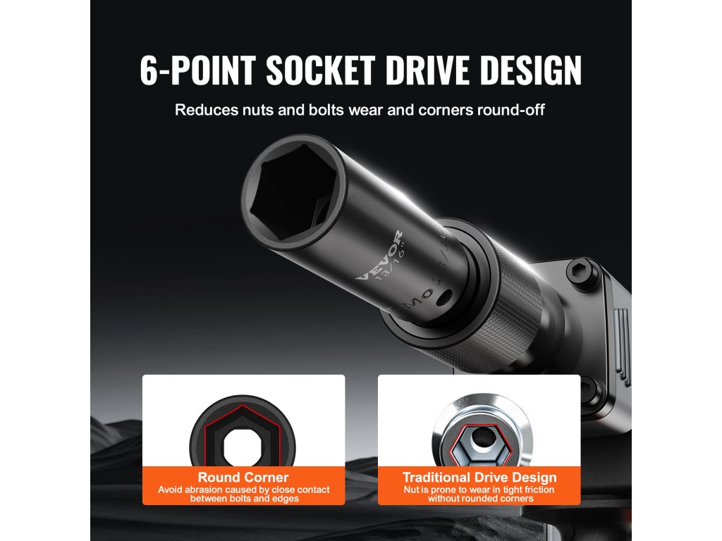 A foglalat hatszögletű kialakítása munka közben rést hoz létre az anya és a szélek között, megakadályozva a túlzott súrlódást és kopást. Ellenáll a nagyobb ütőerőnek és hatékonyan távolítja el a csavarokat.