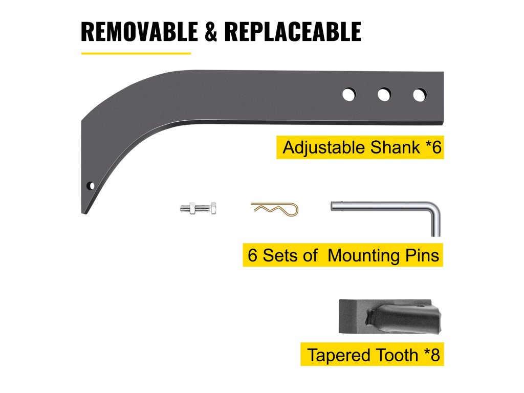 Két kivehető/cserélhető fogat biztosítunk a könnyű ásás érdekében. A fogak hőkezelt, tartós acélból készülnek a hosszú élettartam érdekében.