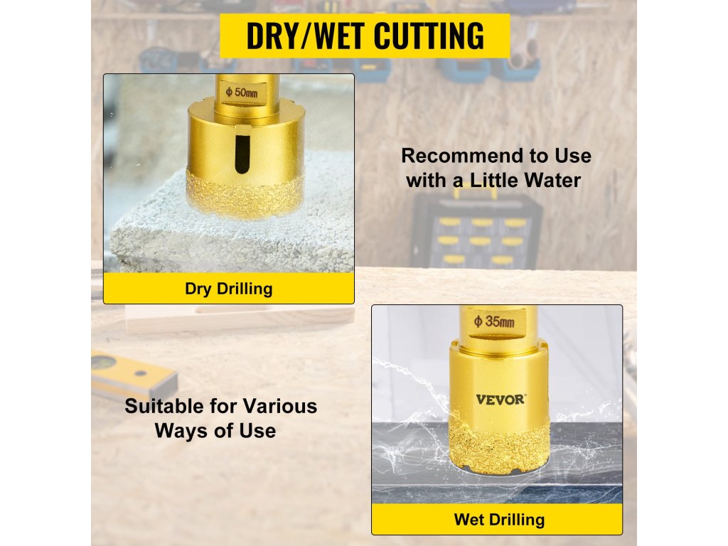Ez a lyukfúró tetszőlegesen vágható nedves vagy száraz módon, hogy megfeleljen a különböző felhasználói környezeteknek. Egy kis víz simábbá teszi.