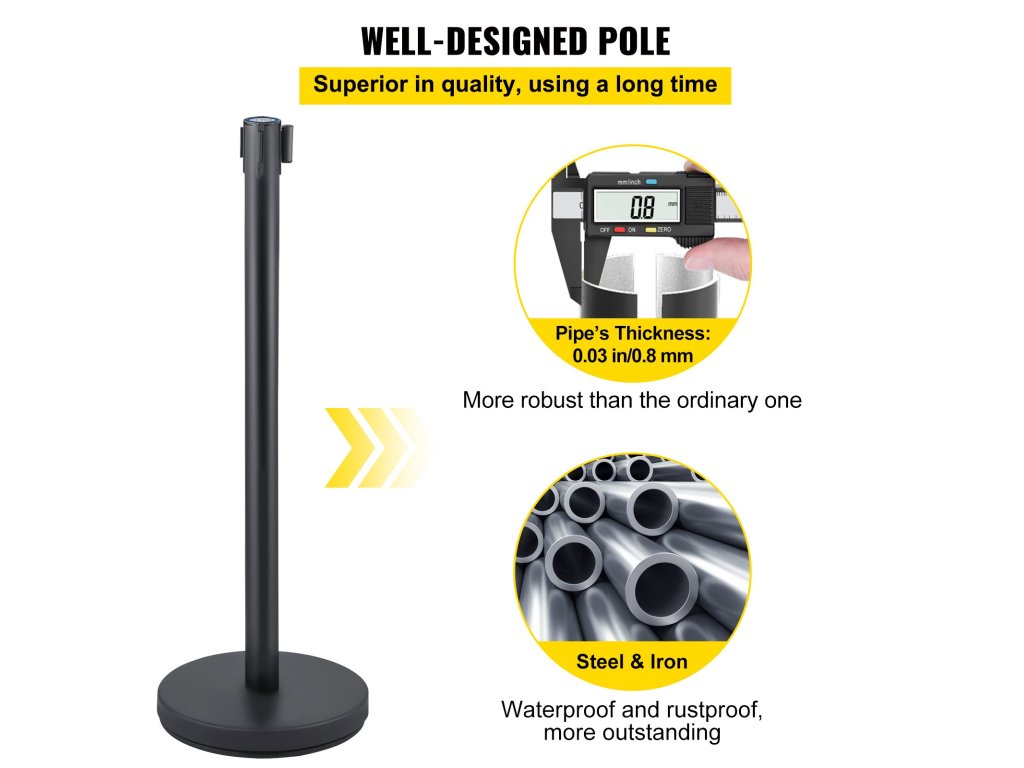 Ez a vonaloszlop alkalmas a tömeg szétválasztására bankokban, repülőtereken, stadionokban, szórakozóhelyeken és más helyeken. Ideális segítőként szolgál, amely kiváló minőségére támaszkodik.