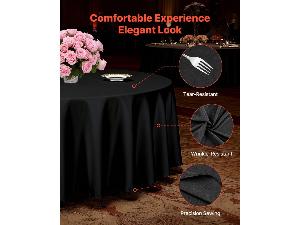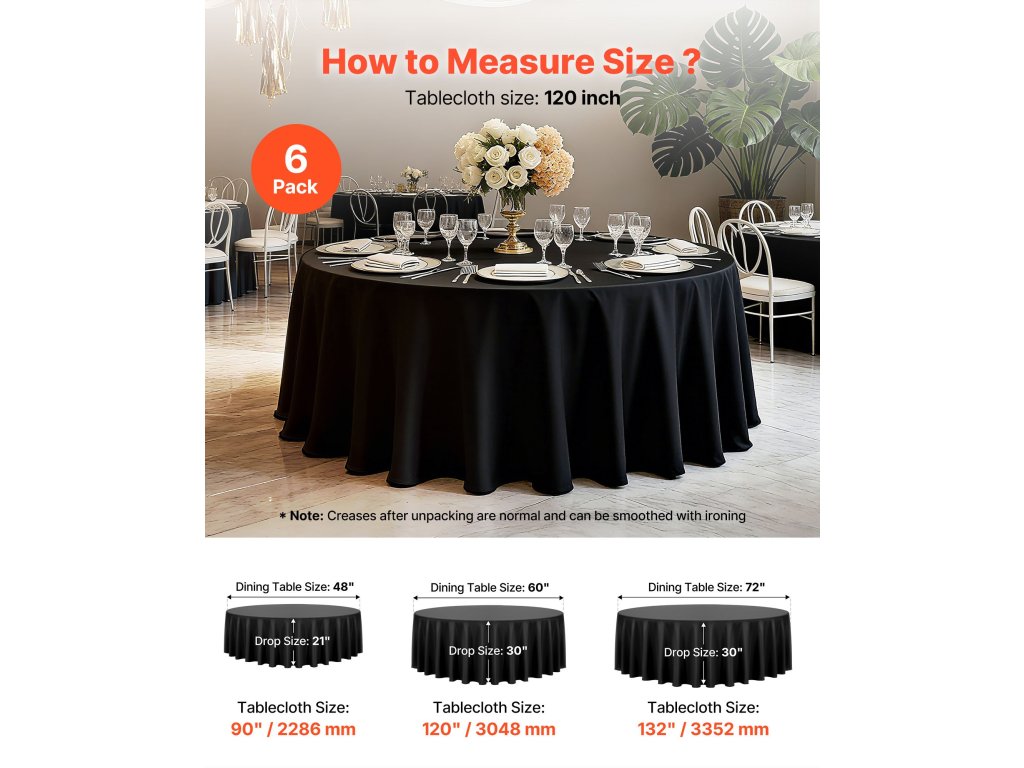 6 db kerek asztalterítő, 120 hüvelyk átmérőjű, poliészter, gyűrődésmentes, mosható