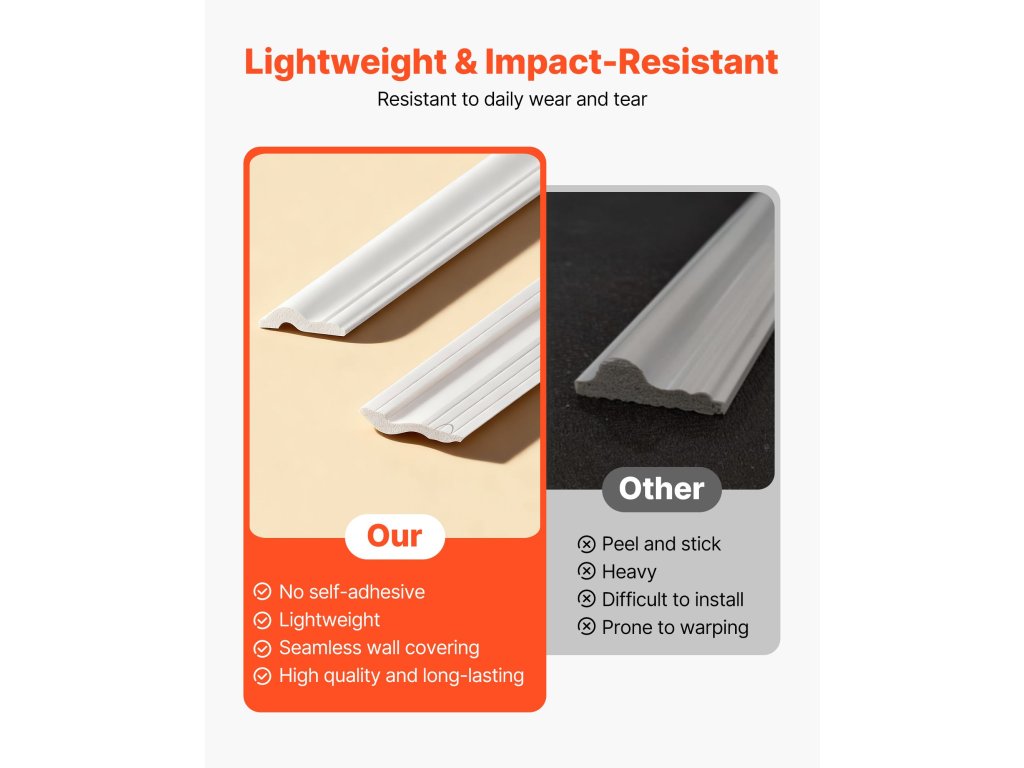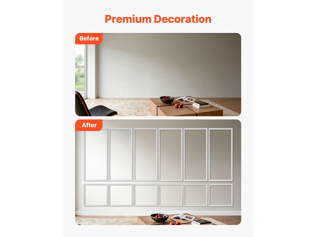 Ez a fali díszléc készlet előre kivágott díszlécrészeket tartalmaz a zökkenőmentes és egyszerű felszerelés érdekében. Akár egy hétvégi bérelt lakást újít fel, akár a házát korszerűsíti, minden részletet úgy terveztünk, hogy már az első próbálkozással magazinos eredményt érjen el.