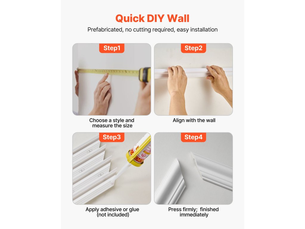 Egy pillanat alatt átalakítja a szobáját. A karcsú vonalak finom kontúrokat hoznak létre, amelyek elegáns megjelenést kölcsönöznek a térnek anélkül, hogy vállalkozót kellene felbérelnie, aggódnia kellene a rendetlenség miatt, vagy heteket töltenie felújítással. Ez a falipárkány-készlet segítségével könnyedén lenyűgöző eredményt érhet el.
