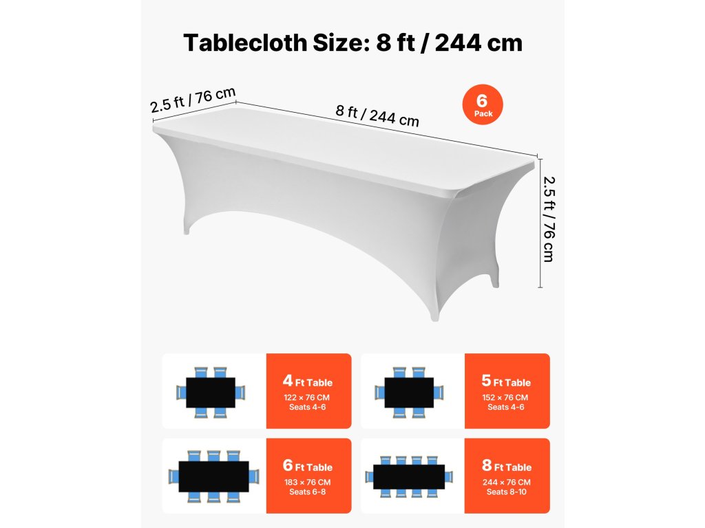 A prémium spandex anyagból készült, elegáns sztreccs asztalterítő kiemeli az asztal általános megjelenését. Tökéletes esküvőkre, ballagásokra, születésnapokra és más különleges alkalmakra, és kifinomult és stílusos jelleget kölcsönöz az eseménynek.