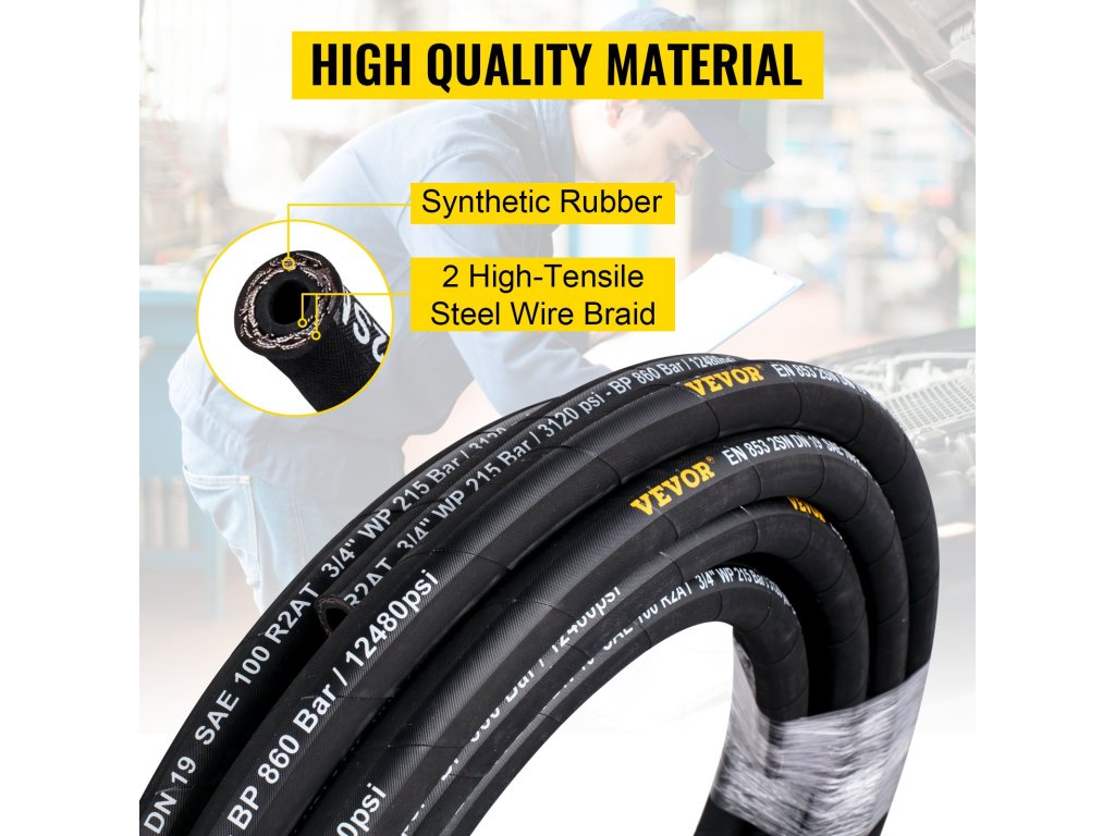 Ez a hidraulikatömlő szintetikus gumiból készül, két réteg nagy szilárdságú acélhuzal erősítéssel a tartósság érdekében.