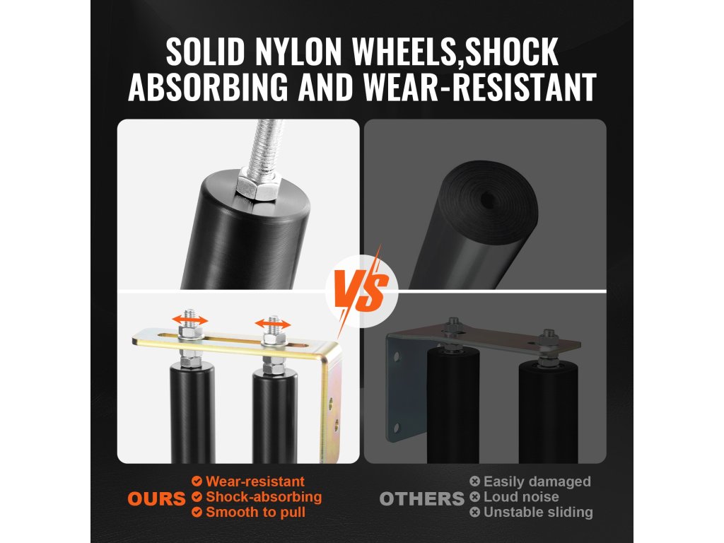 Nemcsak a súrlódást és a kopást csökkenti, de a nejlon anyag kiváló ütéscsillapítást is biztosít, így meghosszabbítja a teljes tolóajtórendszer élettartamát, és megkíméli Önt a gyakori alkatrészcserétől.