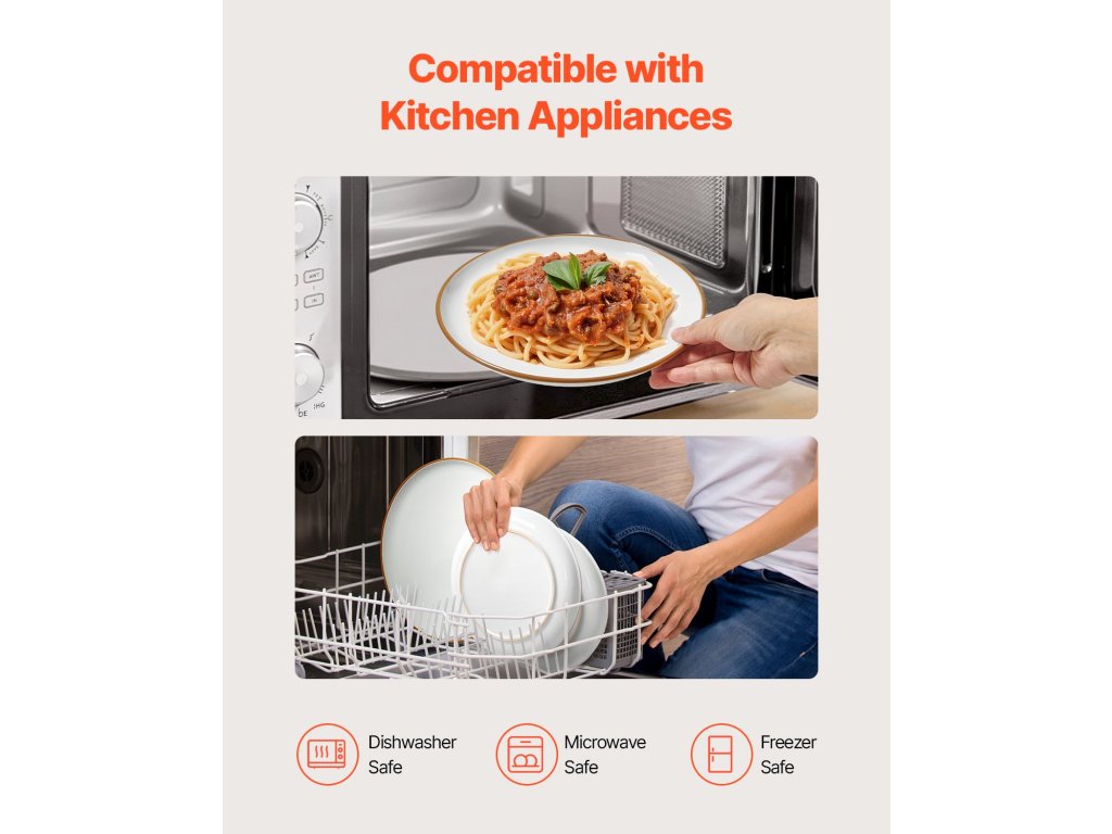 6 személyes étkészlet, kerámia tányérok és tálak, mosogatógépben mosható, fehér