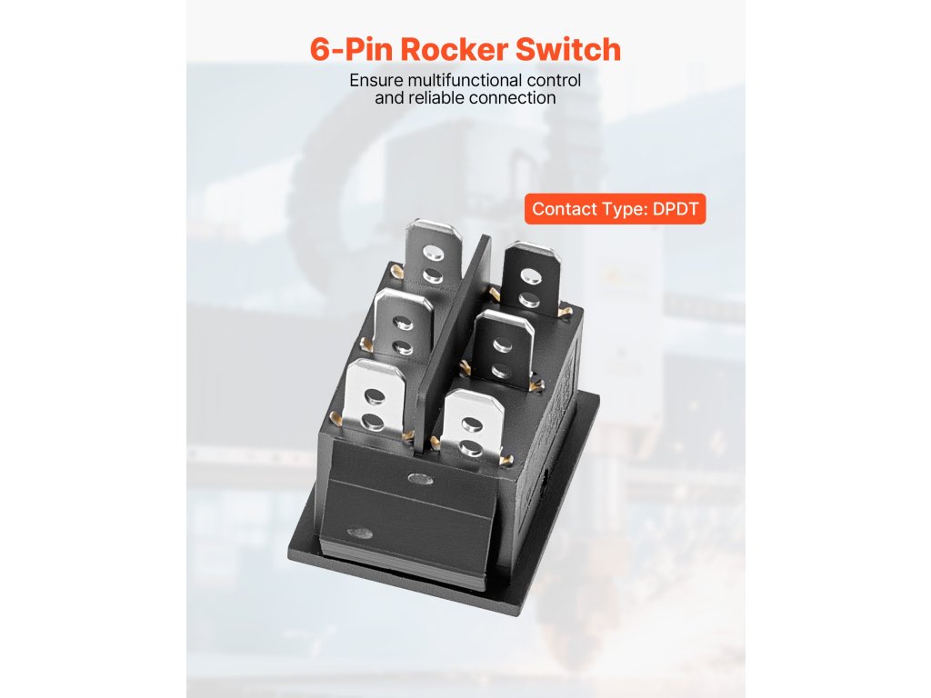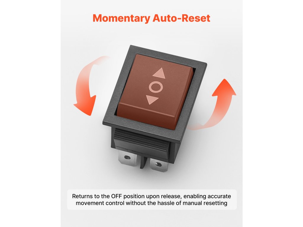 A VEVOR 6-tűs billenőkapcsoló azonnali automatikus visszaállítási funkcióval és 3 állású (ON)-OFF-(ON) kialakítással rendelkezik, amely sima előre/vissza irányítást biztosít. Névlegesen 16 A 250 VAC-on és 20 A 125 VAC-on, és megbízható teljesítményt nyújt az egyenáramú motorrendszerek széles skáláján.