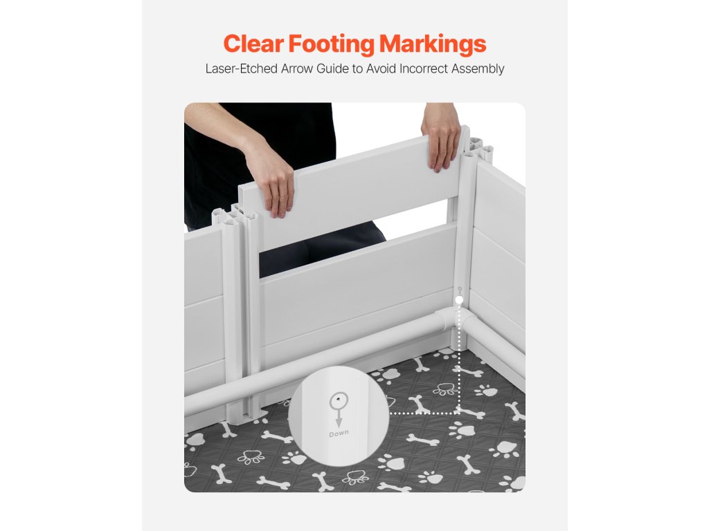 Ez a műanyag kutyatoll pattintható csatlakozókkal, előfúrt oszlopfuratokkal és lézergravírozott nyilakkal rendelkezik a problémamentes beállítás érdekében. Nincs szükség szerszámokra vagy találgatásra.