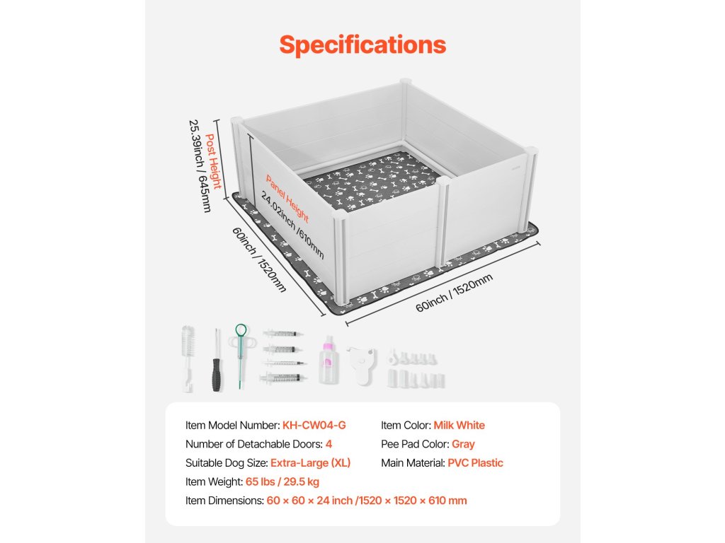 Tágas 60x60x24 inch/1520x1520x610 mm-es doboz mosható vizelettárolóval extra nagytestű kutyák számára! Tartós, vízálló PVC-ből készült, könnyen tisztítható, állítható ajtómagassága pedig tökéletes a növekvő kölyökkutyák számára. Az egyértelmű útmutató nyilaknak köszönhetően a felállítás is problémamentes. Kérjük, vásárlás előtt erősítse meg kutyája méretét.