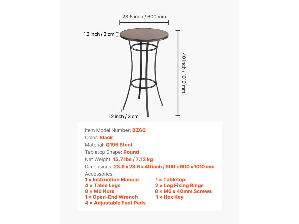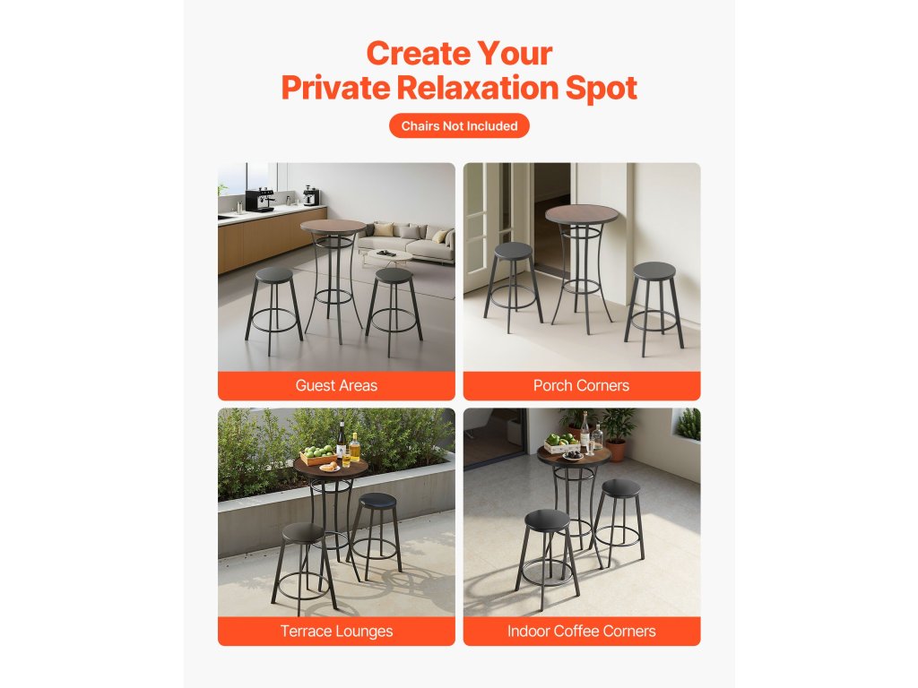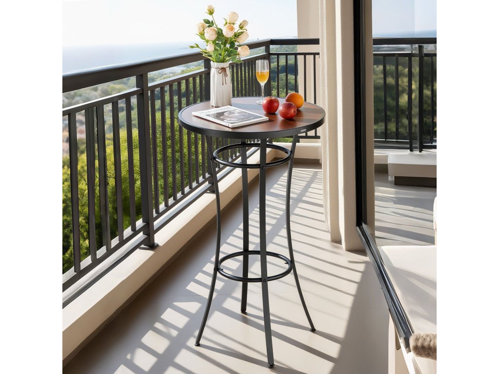 A 23,6 hüvelykes kerek teraszos bárasztalunk stabil fémkerettel rendelkezik, laminált PVC felülettel, amely ellenáll a vetemedésnek és a hajlításnak. Ideális a teraszbárokhoz, társalgókhoz és a verandán a kávéval töltött pillanatokhoz, ez a terasz bárasztal tökéletes a meghitt összejövetelekhez vagy a személyes pihenéshez a szabadidő eltöltése során.