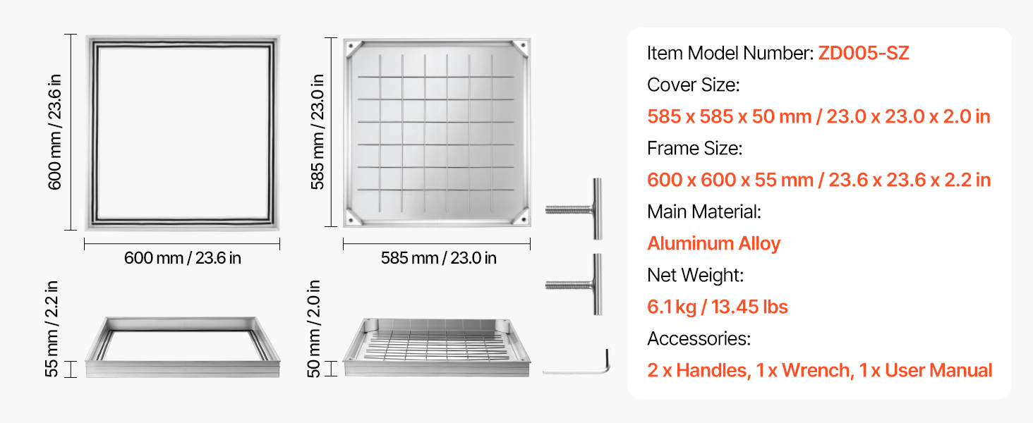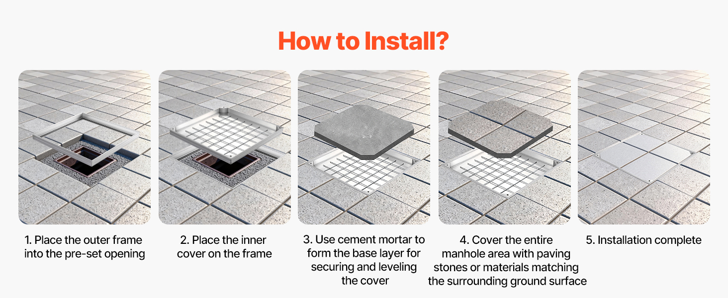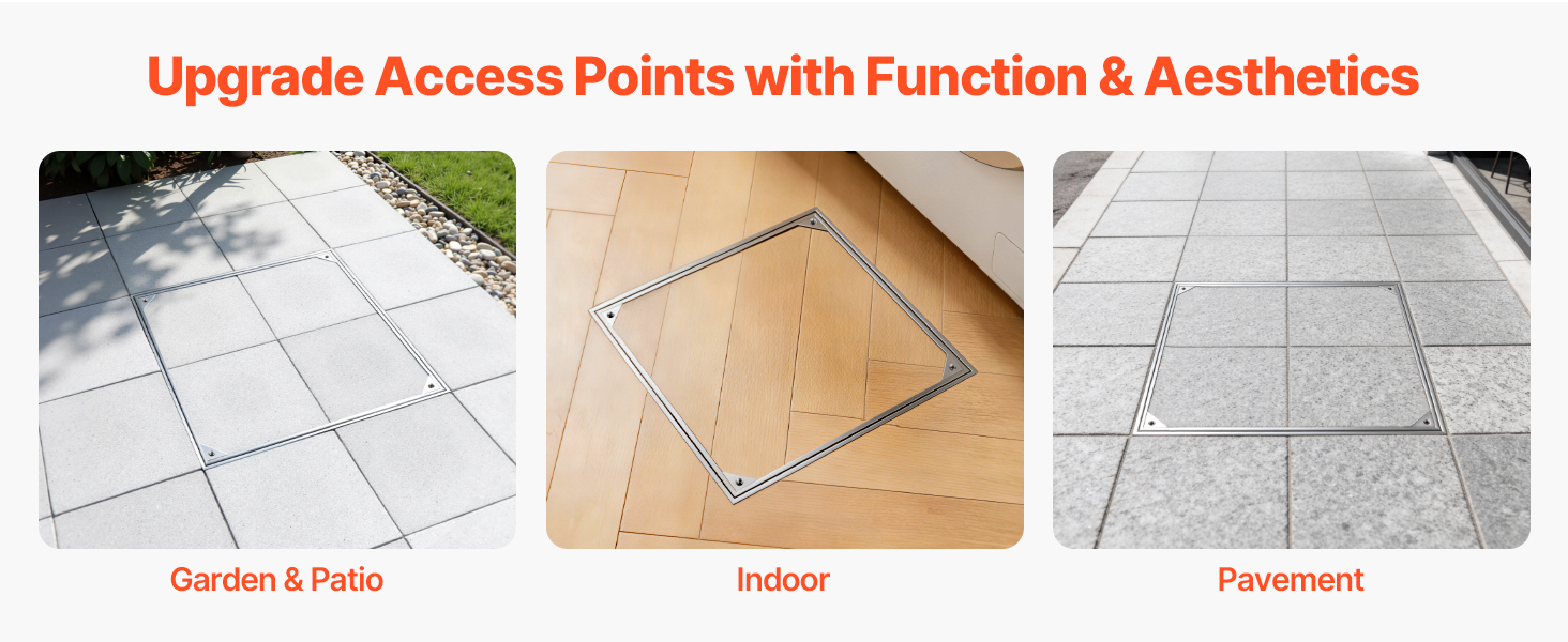 Egy csúnya hozzáférési pontból a felület sima részévé alakíthat. A síkba süllyesztett lejáró és a keret zökkenőmentesen illeszkedik a környező térkő- vagy gyepfelületbe, segítve a botlásveszély csökkentését, miközben tisztább, vonzóbb megjelenést biztosít.