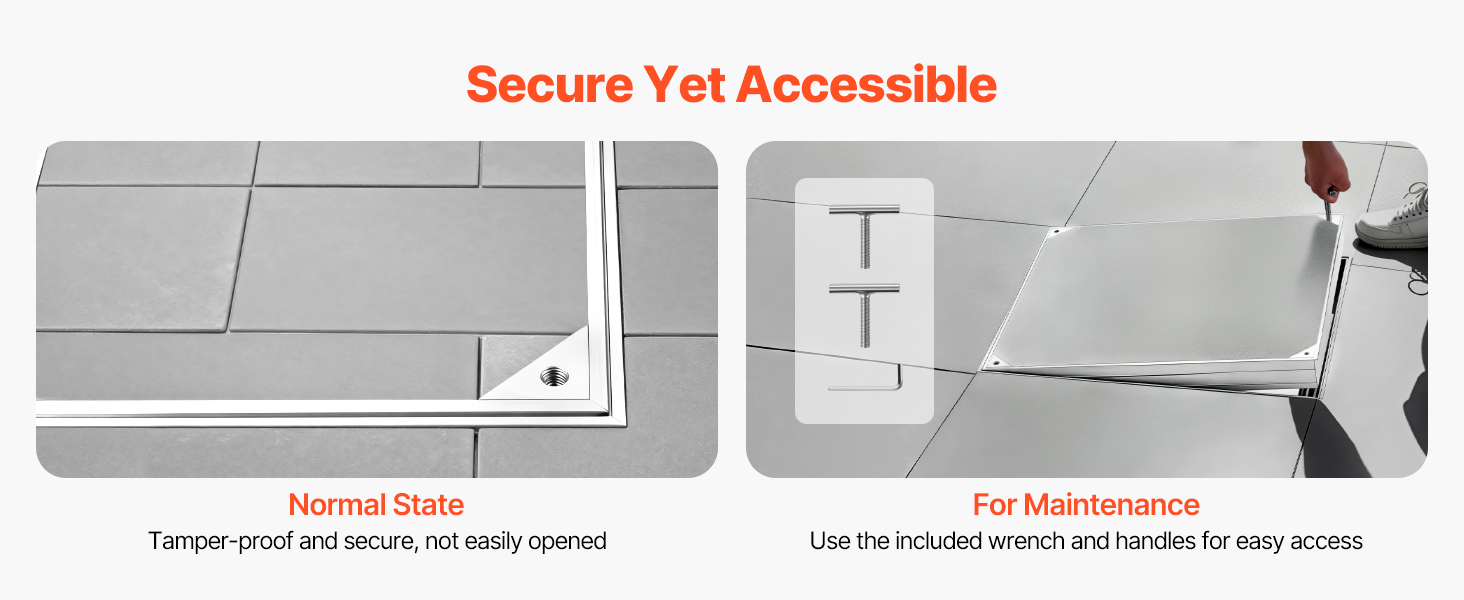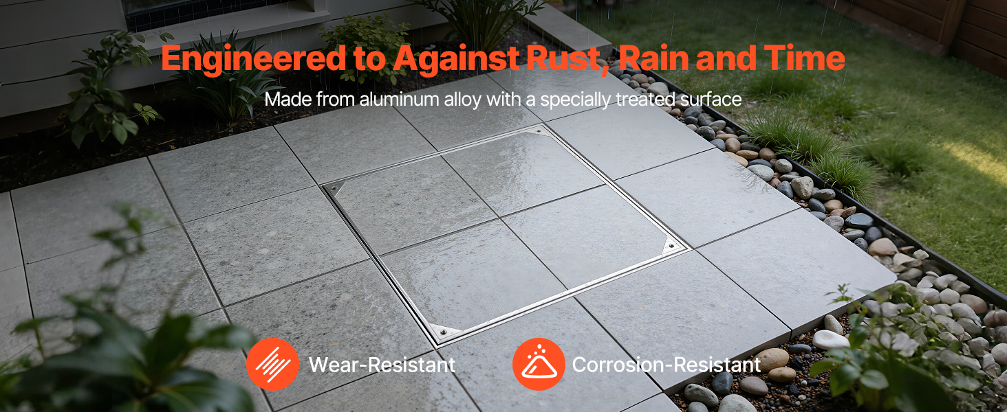 Ideális teraszokra, beltéri padlókra és járdákra, a láthatatlan, süllyesztett kialakítás a környező felületekkel egy szintben van, így az ellenőrzéshez való hozzáférés kényelmes és tiszta.