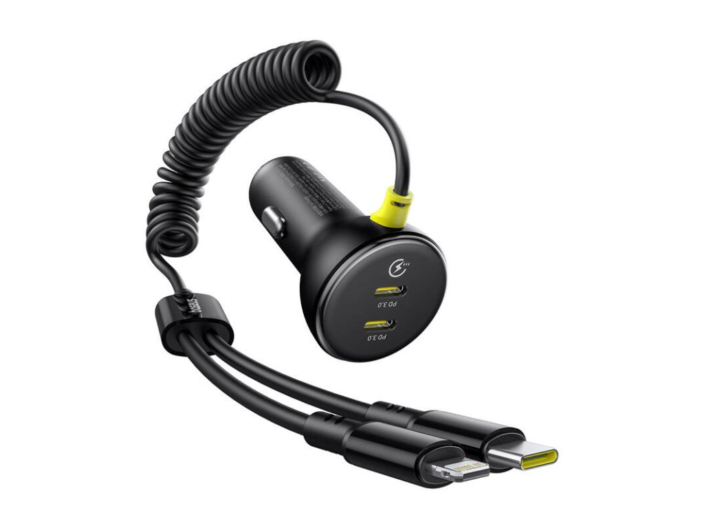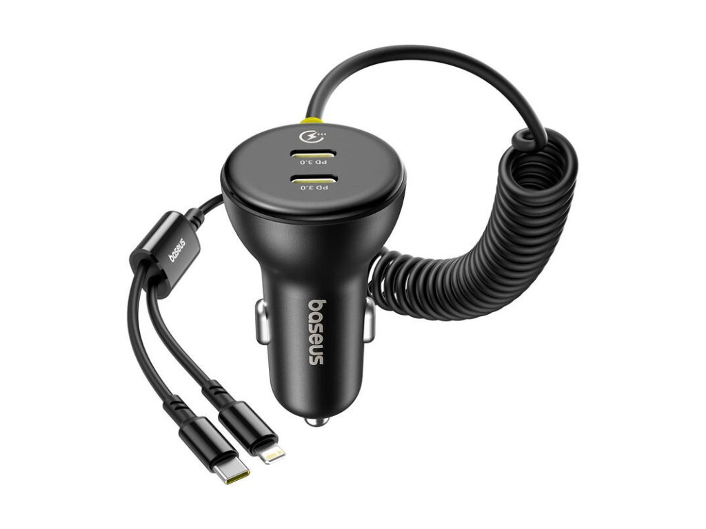 60W-os Baseus USB-C autós töltő + Lightning kábel (fekete)