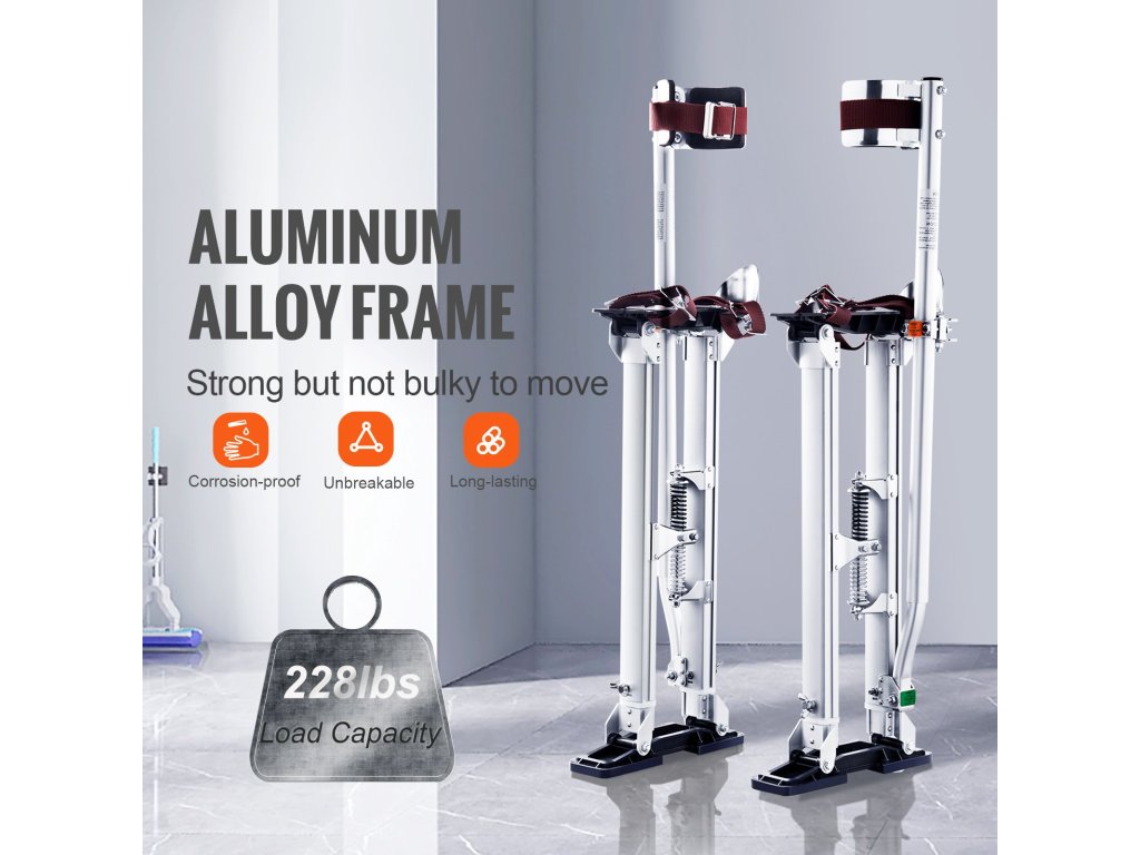 Chrániče VEVOR na sadrokartónové dosky sú skonštruované tak, aby vydržali. Sú vyrobené z pevnej hliníkovej zliatiny a udržia až 228 kg. To zaručuje optimálnu stabilitu a odolnosť. Sú odolné proti korózii a nedeformujú sa, takže sa môžete spoľahnúť na ich dlhodobé používanie. Rám z hliníkovej kovovej zliatiny poskytuje pevnosť a spoľahlivosť. Tieto chodúle sú navrhnuté tak, aby zvládli náročné úlohy bez toho, aby sa zlomili, a stanovujú štandard kvality a výkonu pre profesionálov, ktorí potrebujú spoľahlivú oporu. Pripravte sa na bezkonkurenčnú stabilitu a kvalitu.