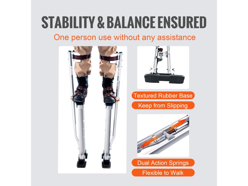 Pri používaní nastaviteľných maliarskych chodúľ VEVOR by ste mali vždy dbať na bezpečnosť. Dvojité pružiny tlmiace nárazy pomáhajú udržiavať rovnováhu pri chôdzi. Gumené základne zvyšujú trenie o zem, aby sa zabránilo pošmyknutiu a poškriabaniu. Pevné nylonové popruhy zvyšujú bezpečnosť. Tieto vlastnosti vám zabezpečia bezpečnú a sebaistú prácu. Bezpečnosť je pri VEVOR-e najvyššou prioritou. Pružiny a gumené základne spolupracujú, aby ste boli stabilní bez obáv. Bezpečnostné prvky sú zabudované do každého aspektu systémov chodúľ. S istotou sa postavte na nohy pri realizácii svojho ďalšieho projektu.