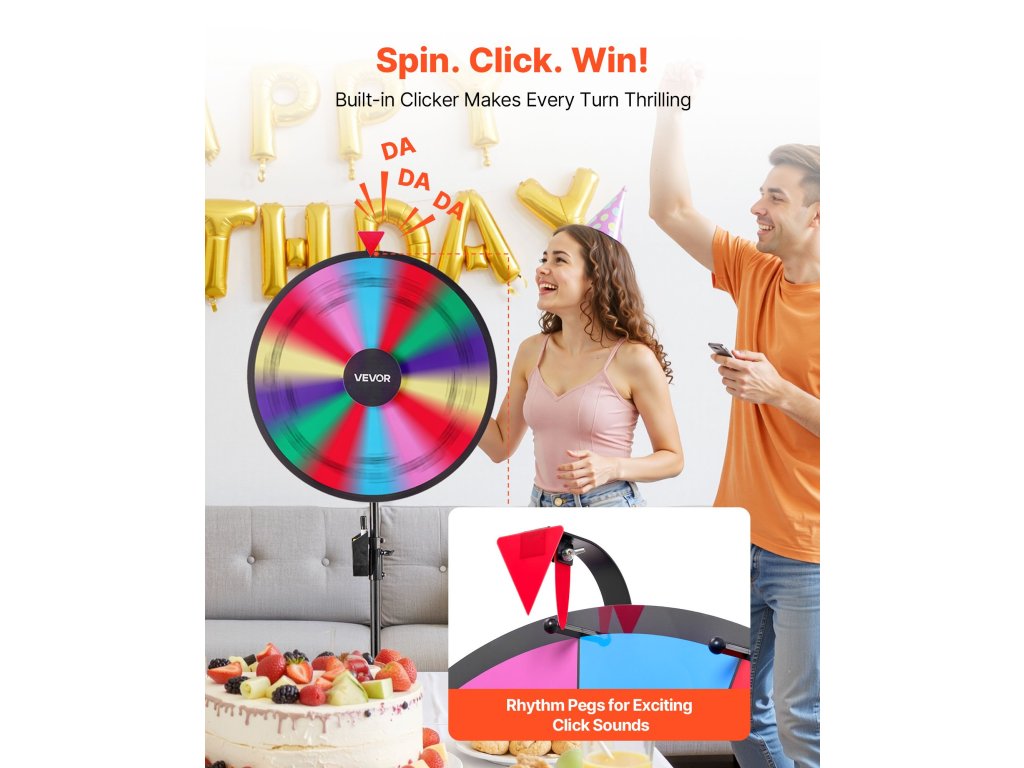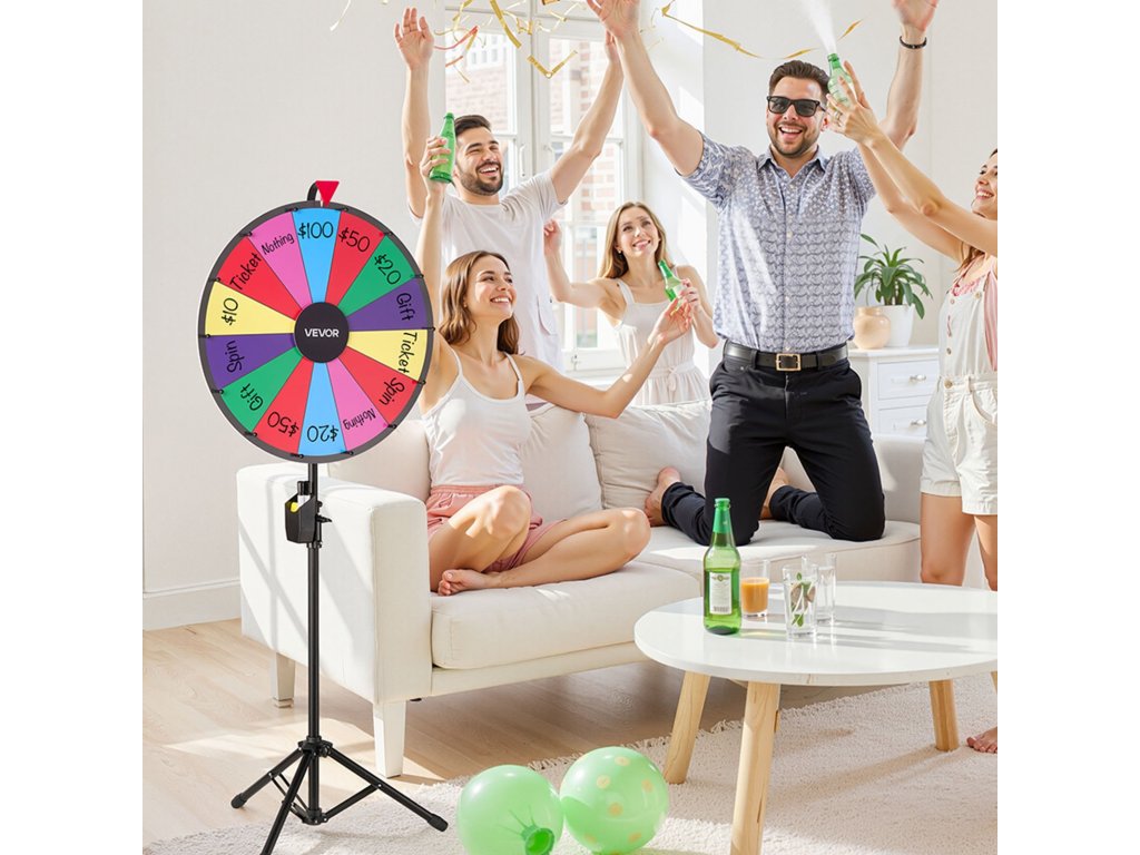 Hozzon izgalmat bármilyen eseményre a sokoldalú nyereménykerékkel! A testreszabható lyukakkal, a sima forgással és a tartós konstrukcióval tökéletes partikra, osztálytermekbe, kiállításokra és egyéb rendezvényekre. Könnyű és könnyen felállítható, végtelen szórakozást nyújt minden korosztály számára.