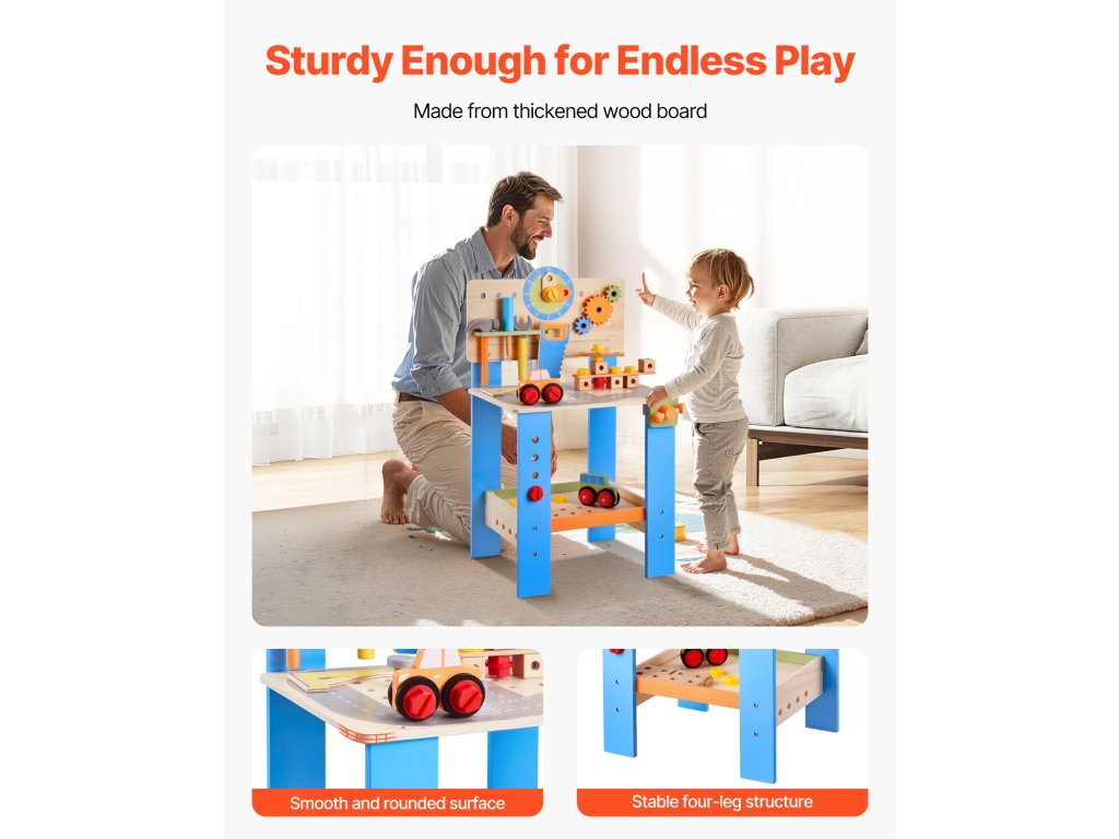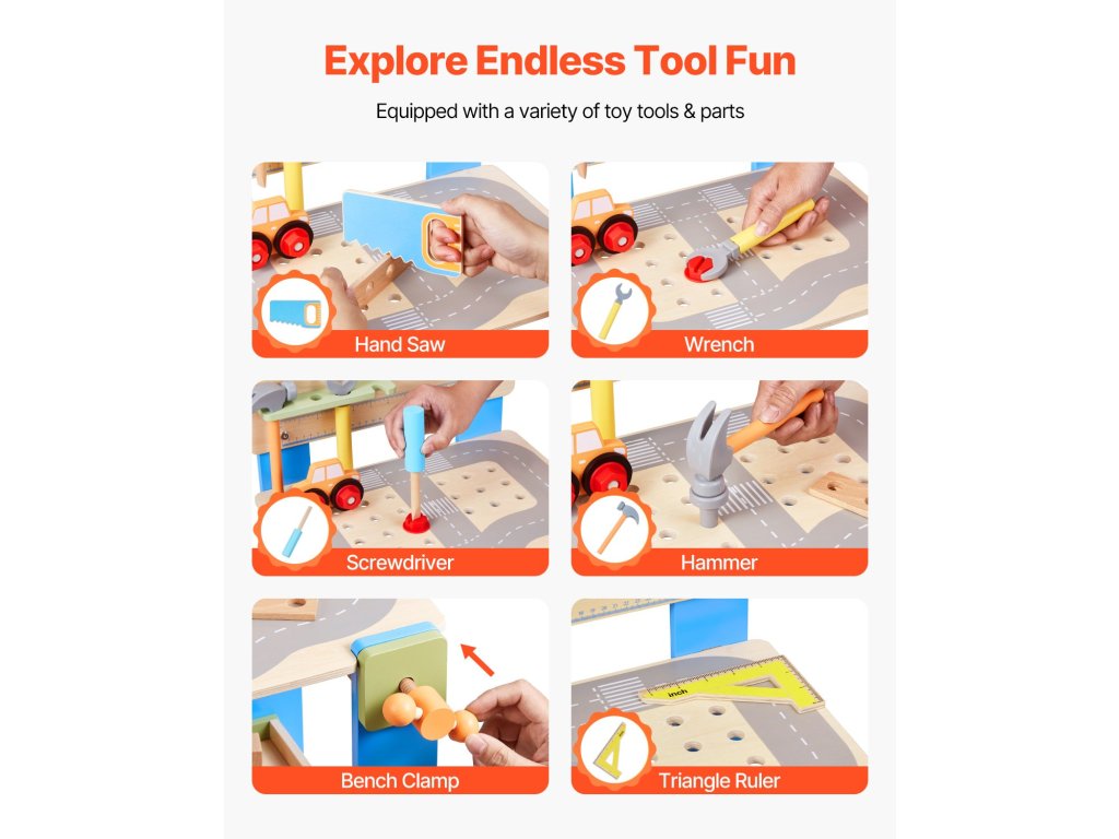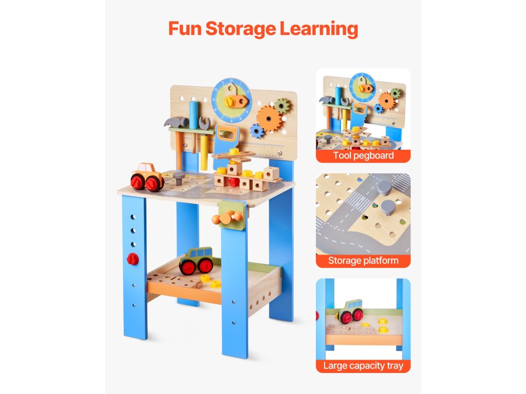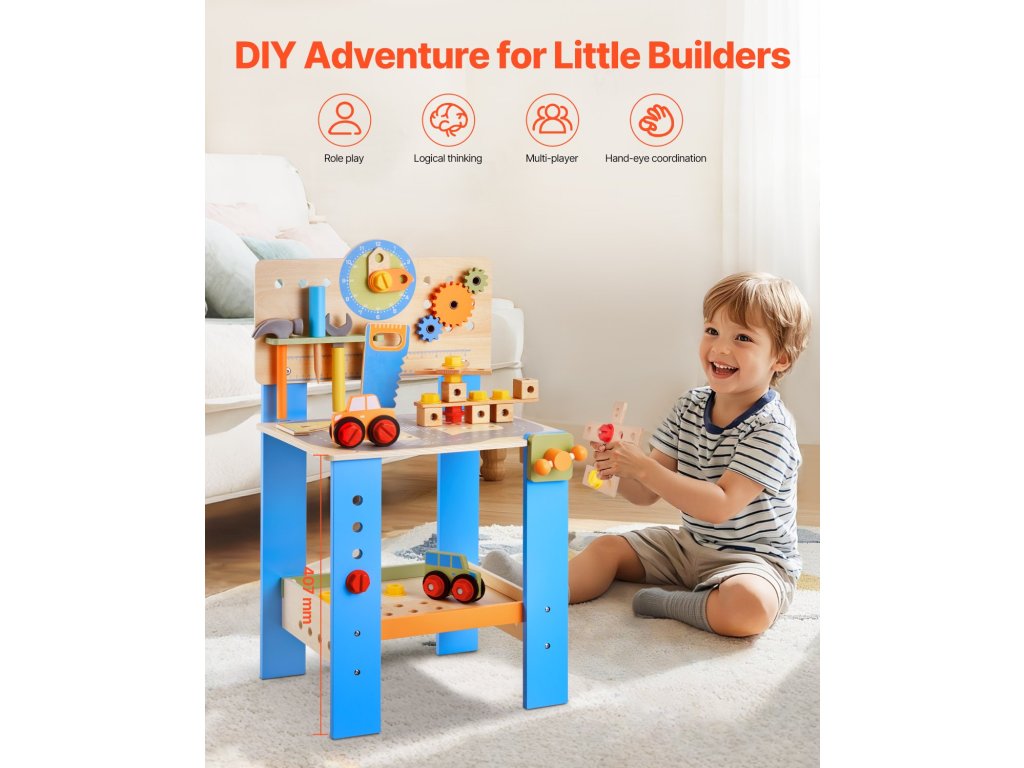 Hagyd, hogy a kisgyermeked kézművest játsszon! A játék fúrógép, csavarkulcs, fűrész és még sok más eszköz segítségével a gyerekek megtanulják, hogyan kell használni a valódi szerszámokat. A kisgyermekes munkapadunkon található barkácsmatricák lehetővé teszik számukra, hogy testre szabhassák munkaterületüket a végtelen szórakozás és kreativitás érdekében.