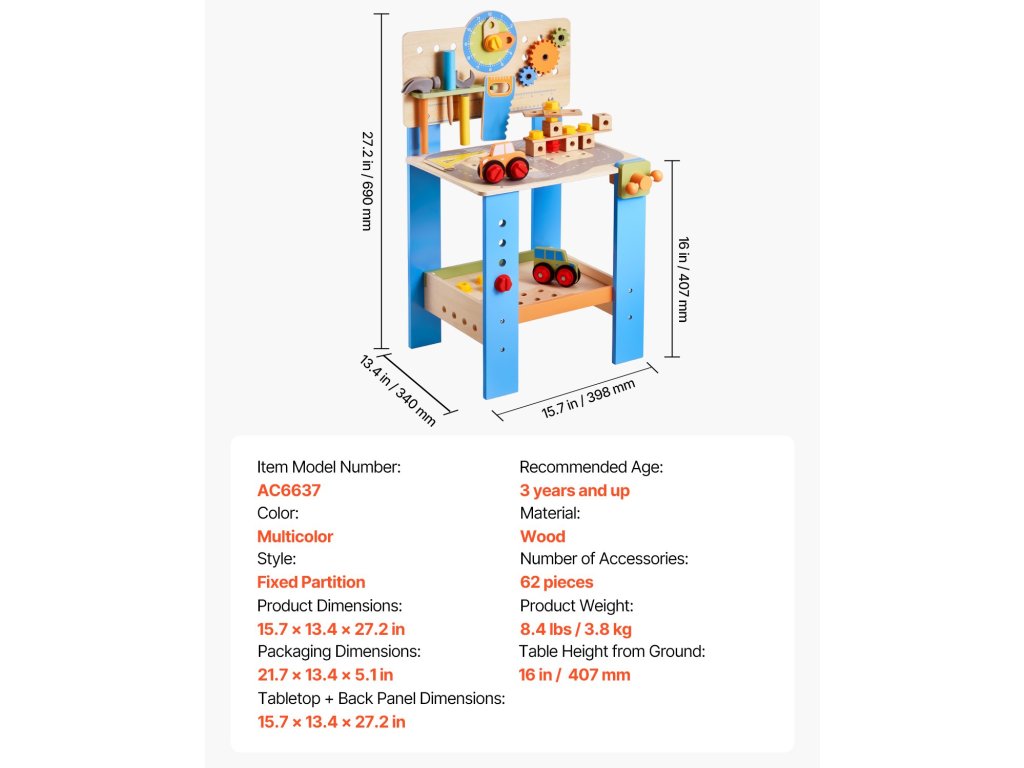 | Az asztallap + hátlap méretei | 15.7 x 13,4 x 27,2 hüvelyk / 398 x 340 x 690 mm |
