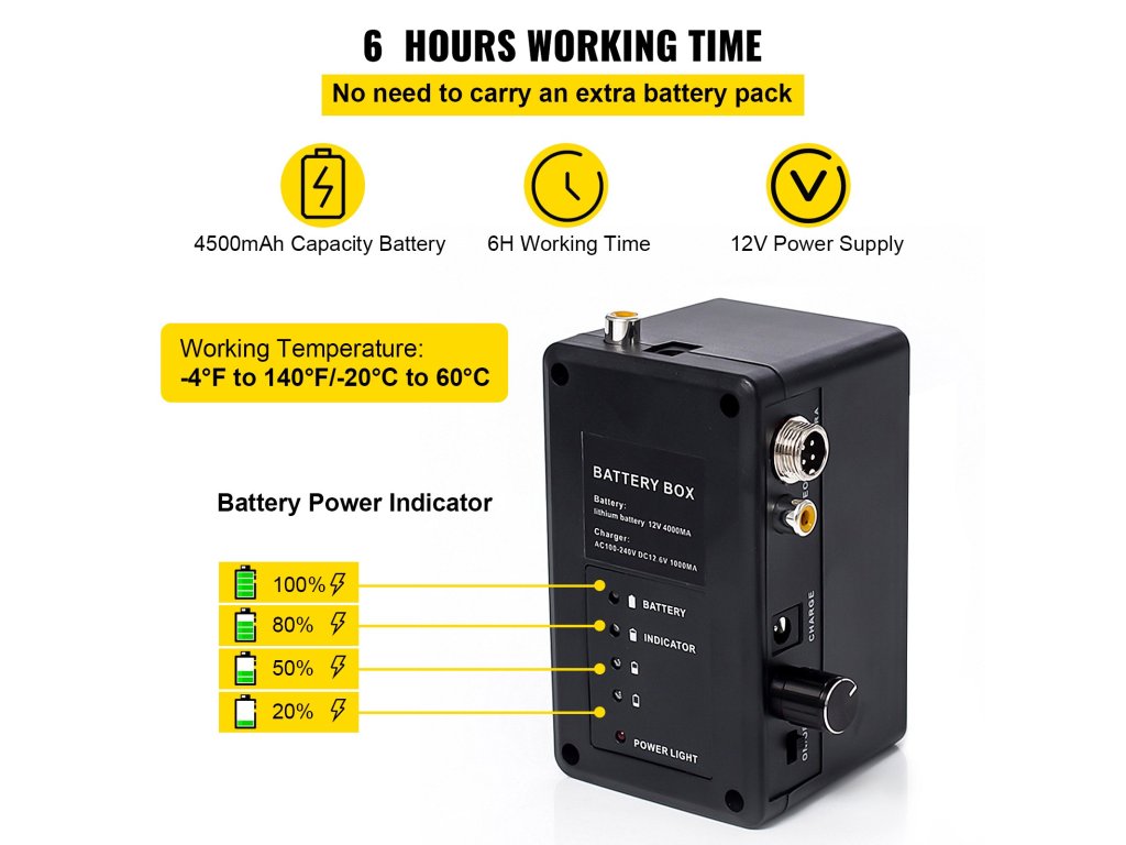 - Hosszú élettartamú 4500 mAh 12 V lítium akkumulátor