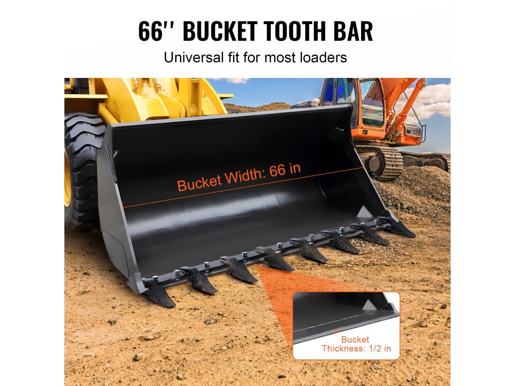 A 66''-os traktortüske ideális a laza talaj, homok, föld és kavics kiásásához. Ez a rakodókanálhoz való fogasléc alkalmazkodik az Ön igényeihez, így nélkülözhetetlen a városi építkezésekhez, bányászathoz, vasútvonalakhoz, utakhoz és hidraulikus projektekhez.