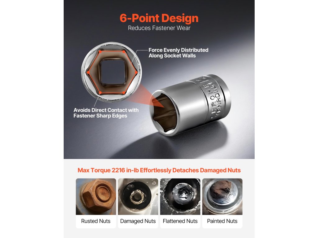 Ez a 3/8 és 1/4 hüvelykes dugókulcskészlet kiváló minőségű korrózióálló anyagokból készült, és kiváló ütésállóságot biztosít. A nagy nyomatékú kialakítás elegendő erőt biztosít a lefagyott vagy korrodált anyák kezeléséhez, így a javítás és eltávolítás gyorsabbá és könnyebbé válik.