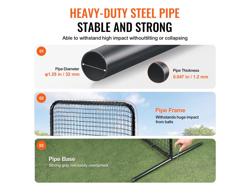 Ez a védő baseball háló kiváló stabilitással és tartóssággal büszkélkedhet. Az acélcső anyaga ellenáll a dobó dobásakor keletkező hatalmas ütőerőnek, és biztosítja, hogy a háló ne dőljön meg vagy deformálódjon a túlzott erő hatására.