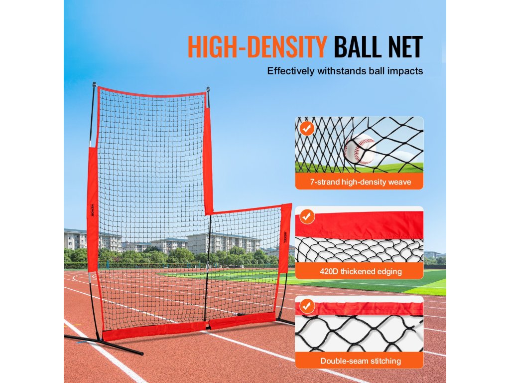 A baseball dobóháló összességében stabil és erős, tartós, és hatékonyan blokkolja a hibás labdákat, így megakadályozza a dobó sérüléseit, és biztosítja a sportmérkőzések biztonságos és zökkenőmentes lebonyolítását.