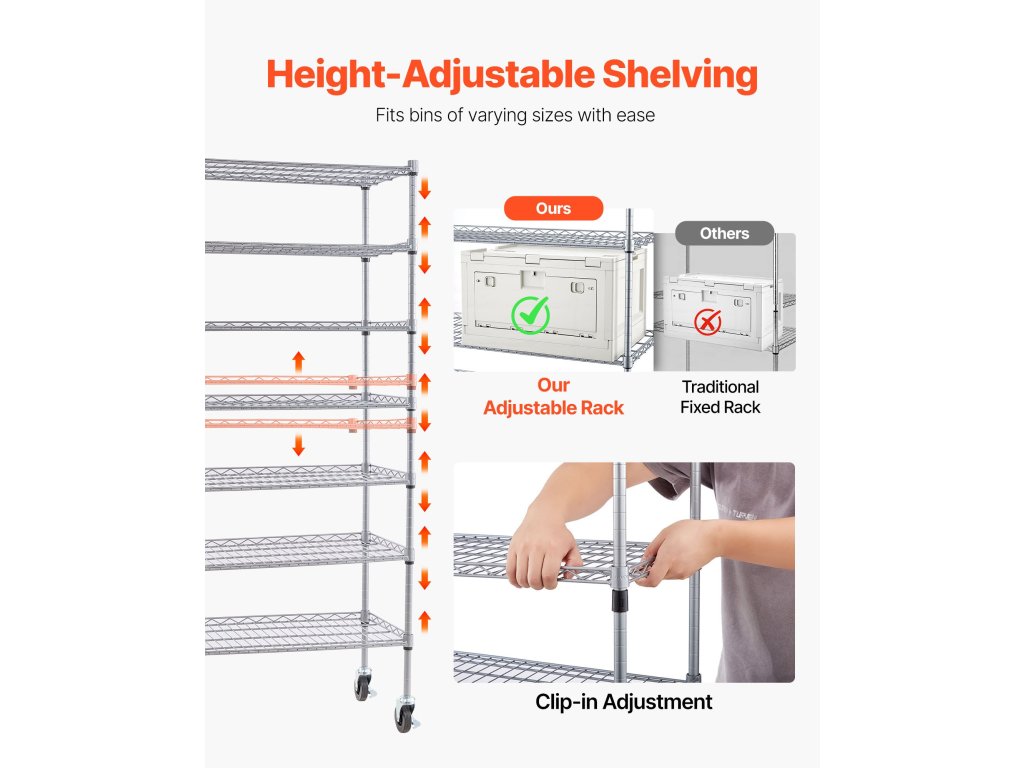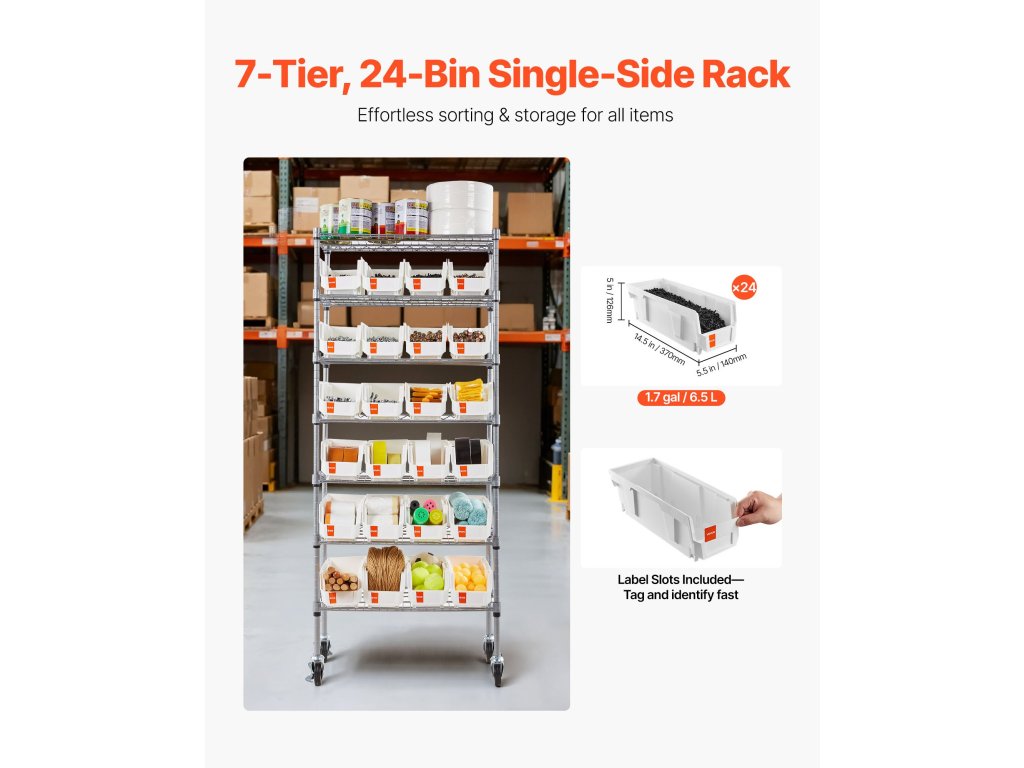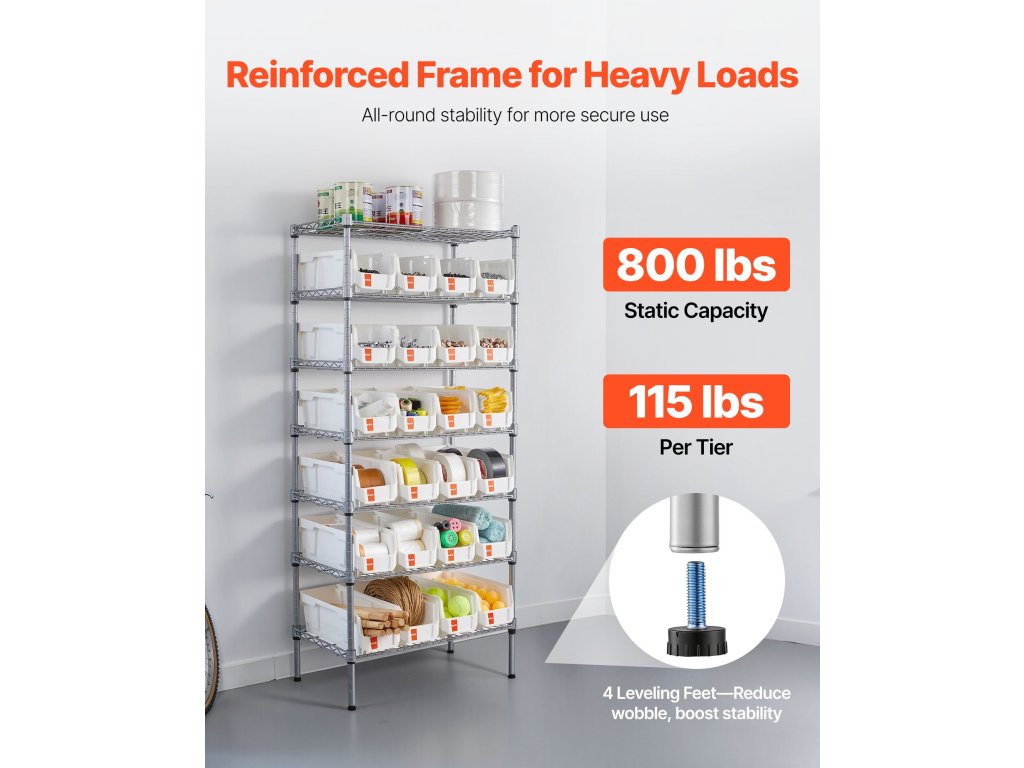 Minden egyes tároló-szervező állvány akár 52,2 kg (115 font) súlyt is elbír a magabiztos napi használathoz. A Q195 porszórt bevonatú váza ellenáll a kopásnak, míg a stabil PP kosarak és a megemelt sínek segítenek abban, hogy a tárgyak pontosan ott legyenek, ahol szeretné.