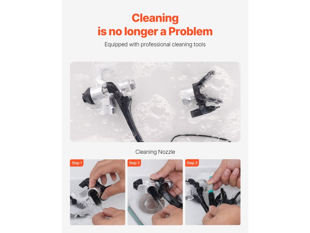A tartósság és az esztétikum érdekében korrózióálló krómkerettel rendelkezik. Airless festékszórónk nagymértékben csökkenti az eltömődés és a szivárgás kockázatát, és környezetbarát, egyenletes festést biztosít. Meghosszabbított rúddal rendelkezik a magasan végzett munkákhoz. Nincs szükség többé erőlködésre vagy mászásra!