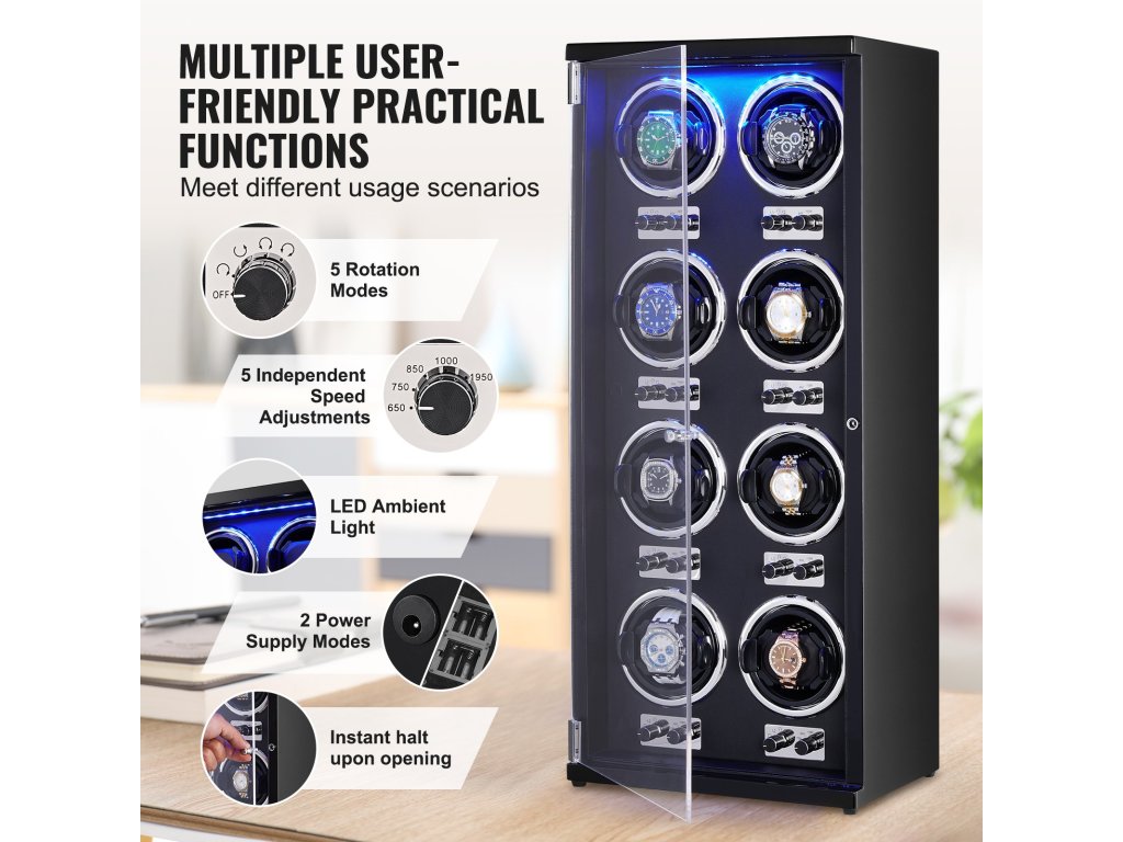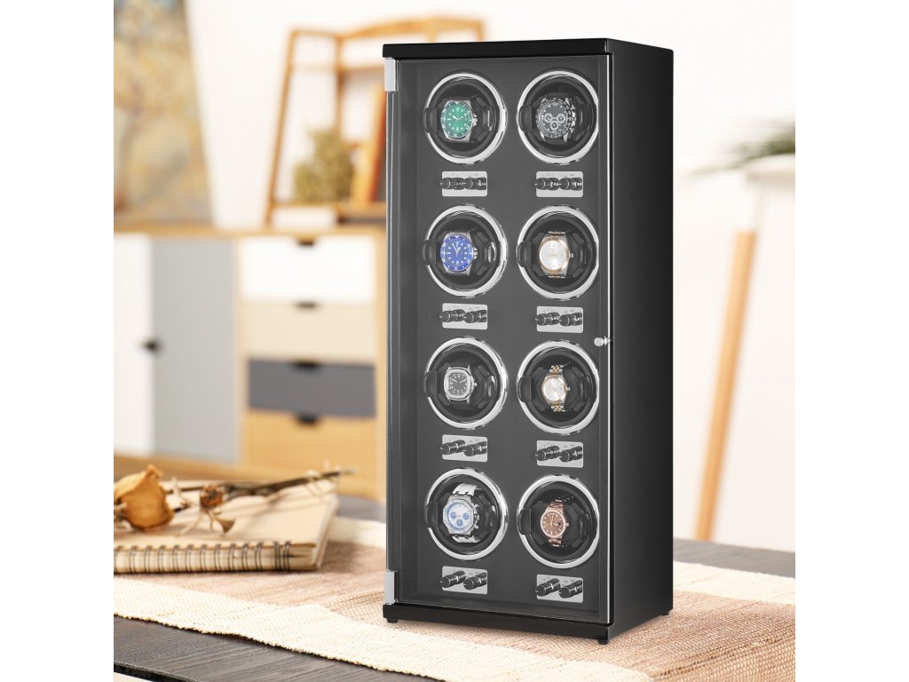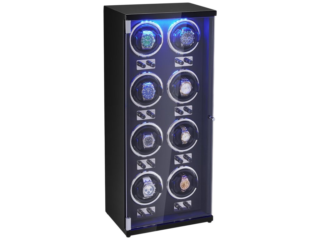 8 automata órahúzó, csendes motorok, kék LED, fekete PU