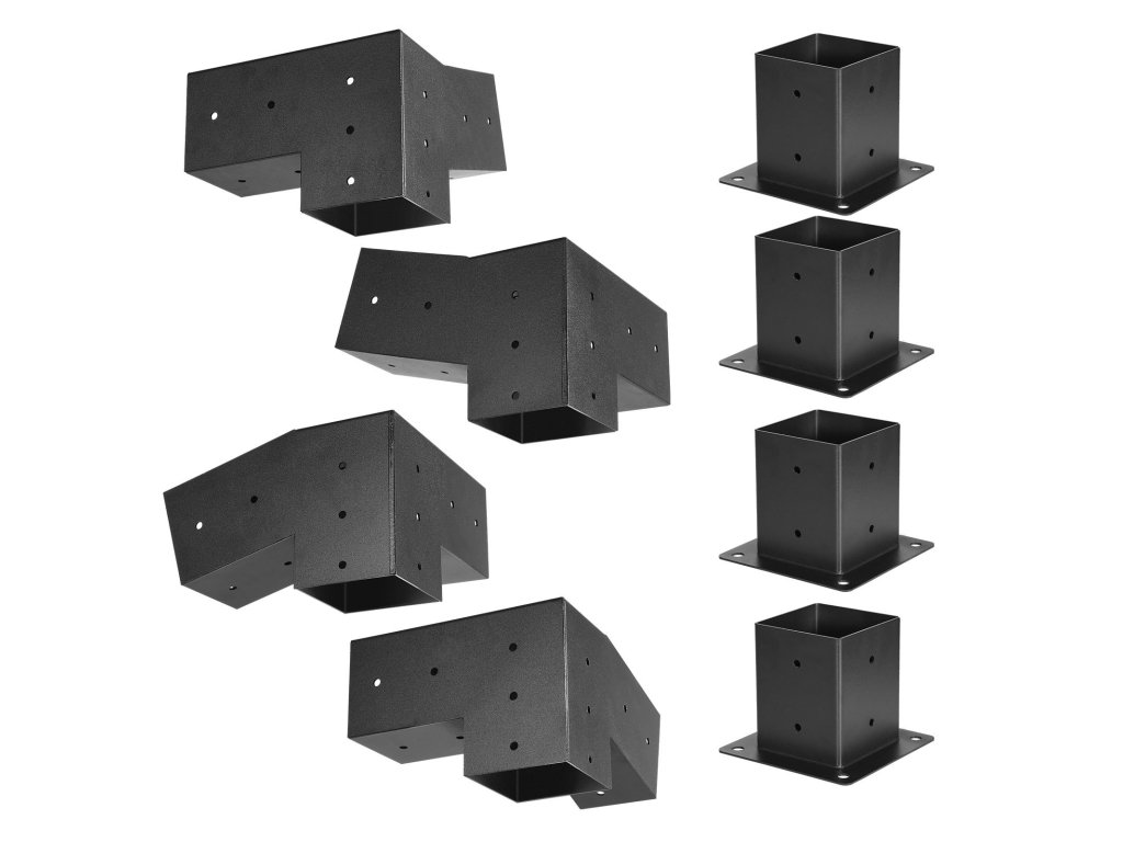 8 darabos, 4×4 hüvelykes, 3-utas konzolkészlet 92×92 mm-es acélhoz, csavarokkal
