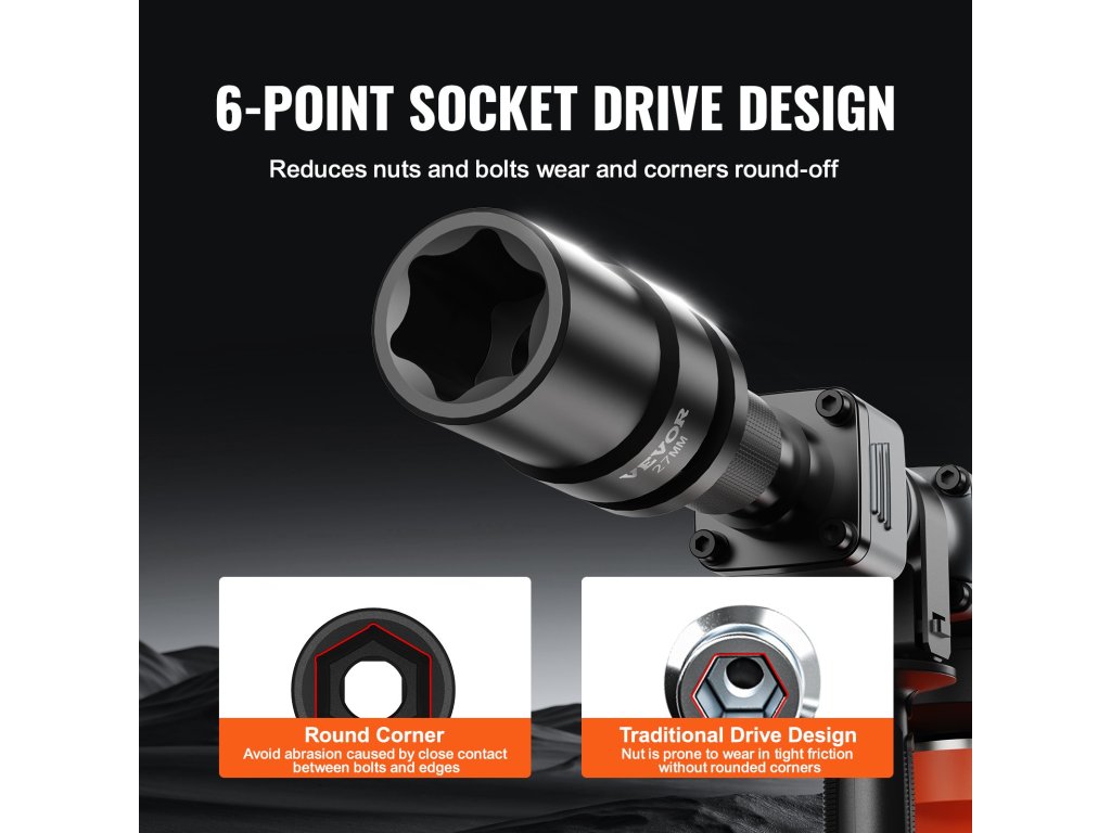 A foglalat hatszögletű kialakítása munka közben rést hoz létre az anya és a szélek között, megakadályozva a túlzott súrlódást és kopást. Ellenáll a nagyobb ütőerőnek és hatékonyan távolítja el a csavarokat.