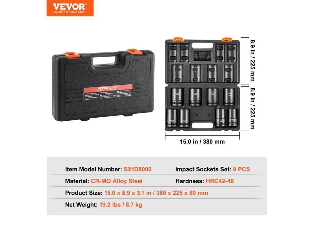 Professzionális és hordozható ütvecsavaros dugókulcs-készletet keres? A VEVOR 8 darabos ütvecsavaros dugókulcs-készlet teljes körű szerszámkészletet kínál, amely különösen alkalmas a különböző autómárkák javításához.