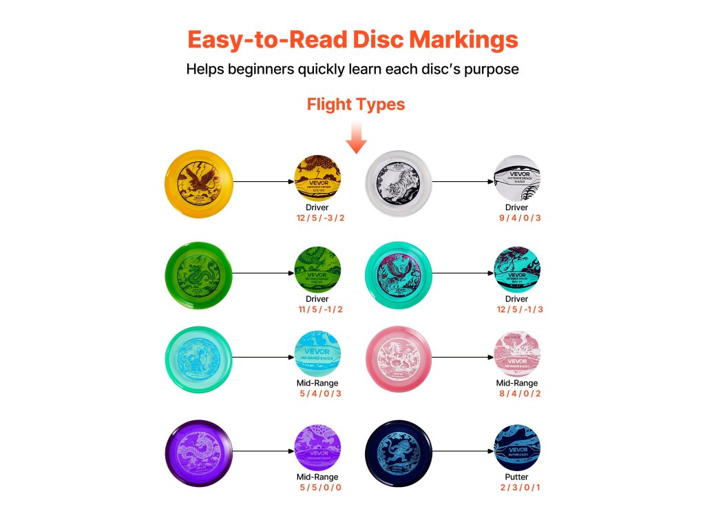 8 darabos disc golf korongkészlet kezdőknek, putter, középhaladó, driver