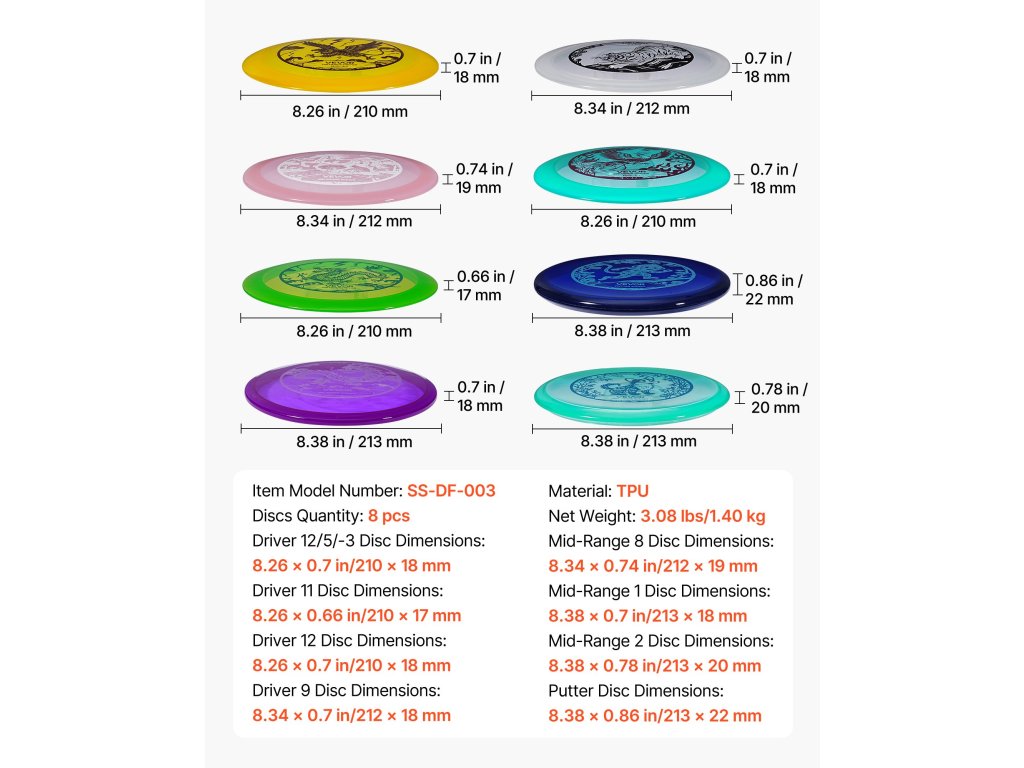 | A Putter korong méretei | 8.38 x 0.86 in/213 x 22 mm |
