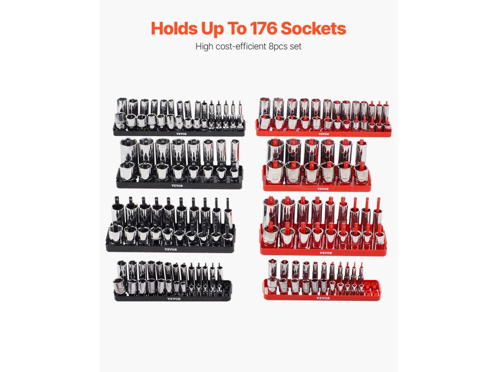 8 darabos szervezőkészlet, 1/4'', 3/8'', 1/2'', akár 176 darab jelöléssel