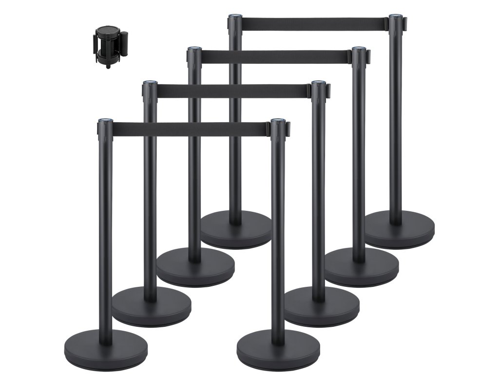 8 db-os elválasztó oszlop, 2 m-es szalag, fekete, beton+fém talp