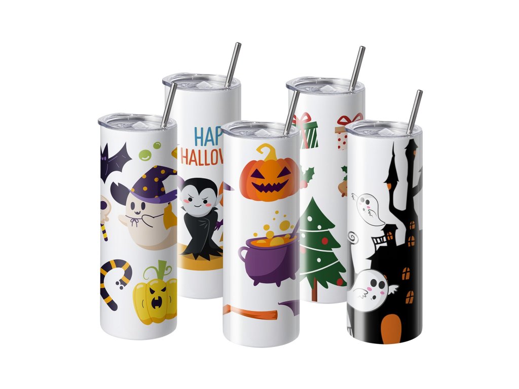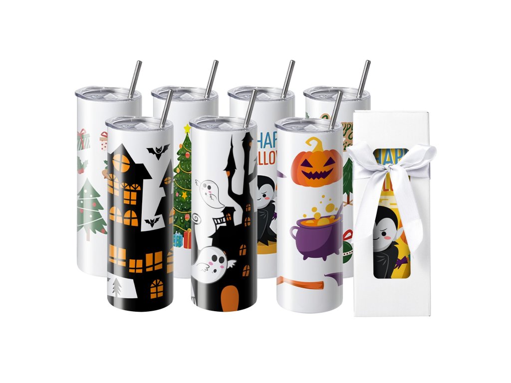 8 db-os szublimációs pohárkészlet, 591,5 ml, duplafalú rozsdamentes acél, szívószállal