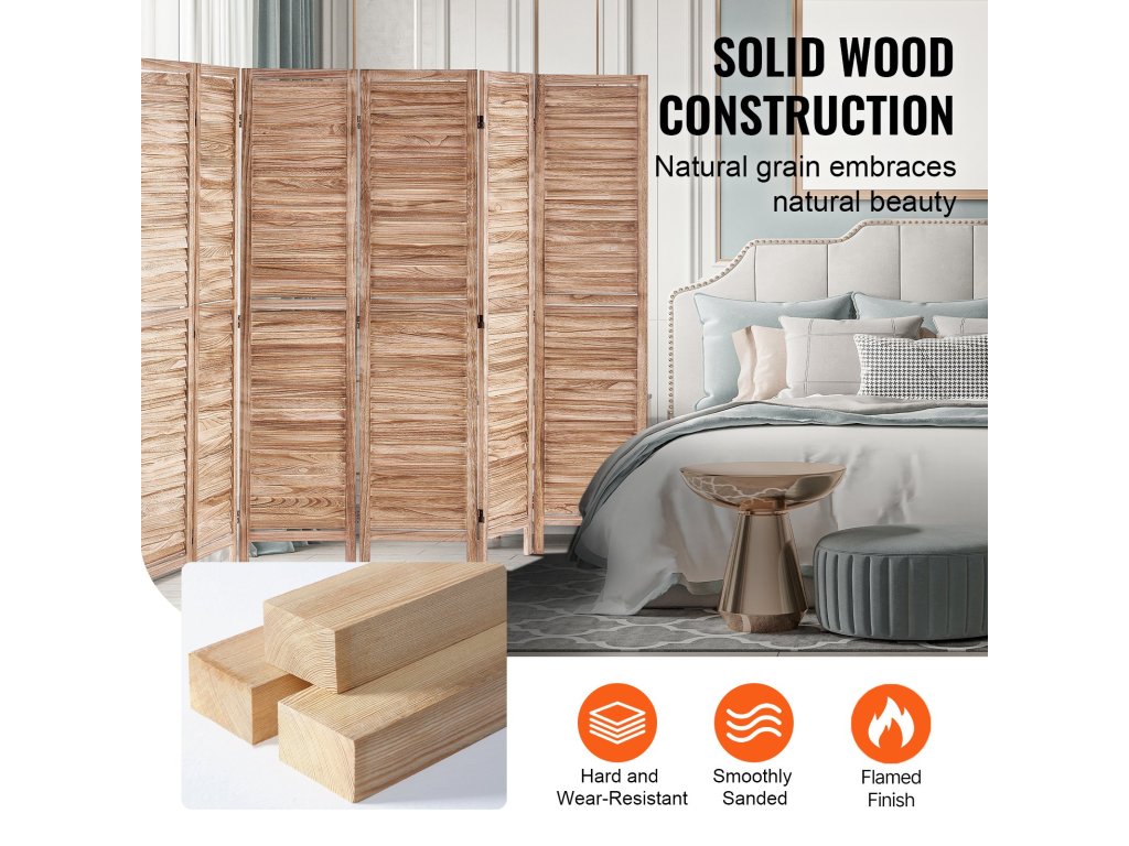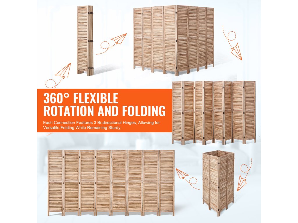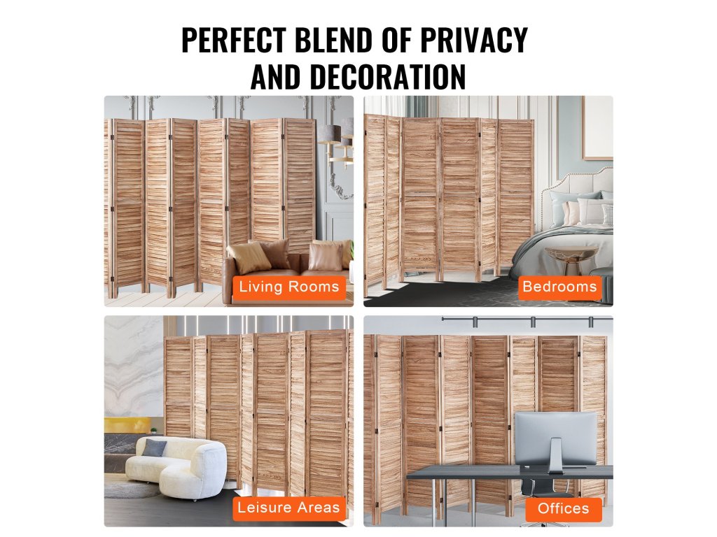 VEVOR Stílusos, 8 paneles, fából készült térelválasztó