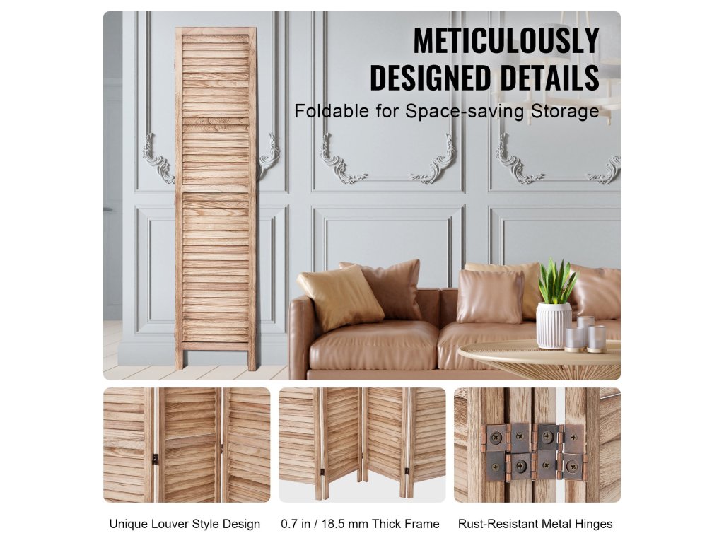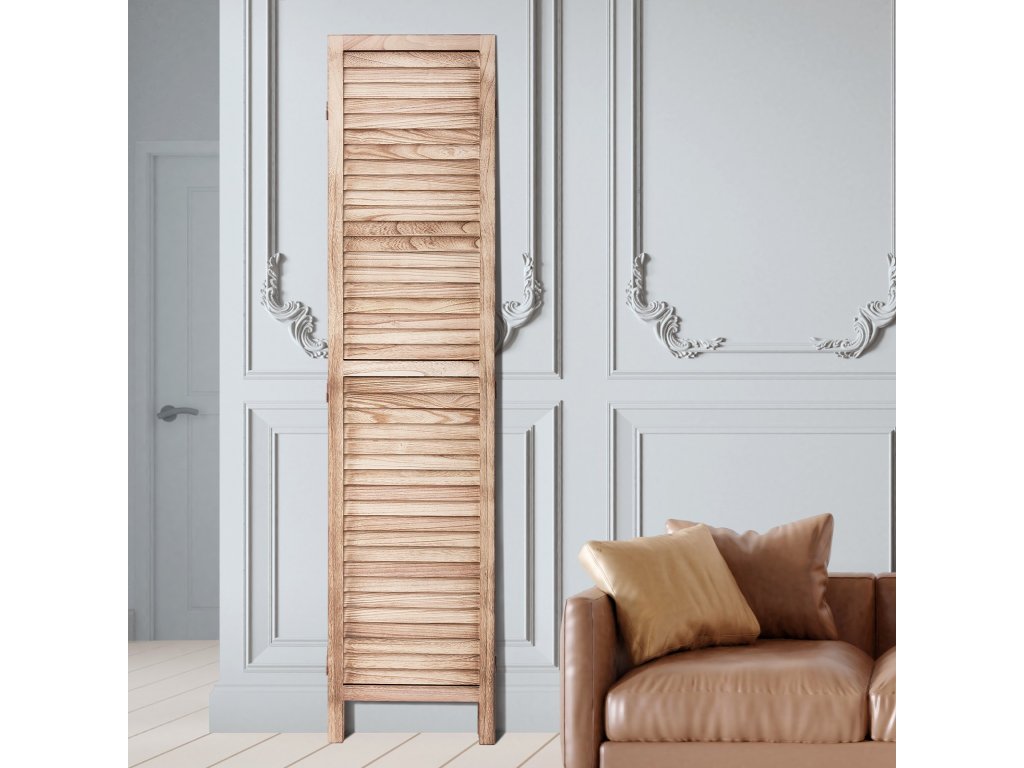Ez a térelválasztó európai minimalista kialakítású, redőnyökkel és 360°-ban forgatható, könnyen összecsukható panelekkel. Tartós Paulownia fából készült, és ideális a szobák elválasztására, a magánszféra védelmére és a napfény árnyékolására.