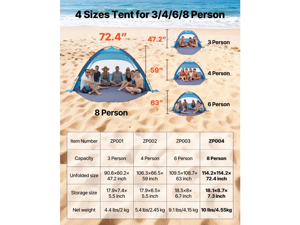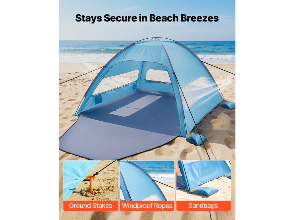 Hordozható strandsátrunk elegendő árnyékot biztosít ahhoz, hogy megvédje Önt és családját a kemény, közvetlen napsütéstől, és biztosítsa a kényelmes és pihentető napot.