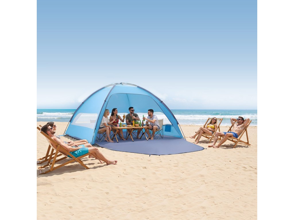 A strandon való tartózkodás kellemesebbé tételére tervezett strandsátrunk kényelmes, árnyékos menedéket biztosít az egész család számára, hogy pihenhessen.
