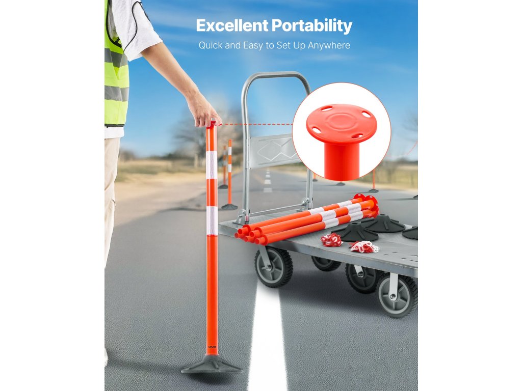 A jelzőoszlopok élénk színekkel és 360°-os fényvisszaverő csíkokkal rendelkeznek, hogy az éjszakai közúti figyelmeztetések során fokozott biztonságot nyújtsanak. Levehető kialakításának köszönhetően könnyen tárolható a reagáló járművekben vagy ömlesztett szállításhoz, így szükség esetén könnyen hozzáférhetővé válik.
