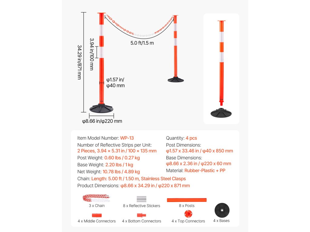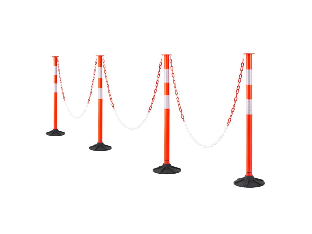 4 csomag szállítási demarkációs oszlopok, töltött talppal és láncokkal