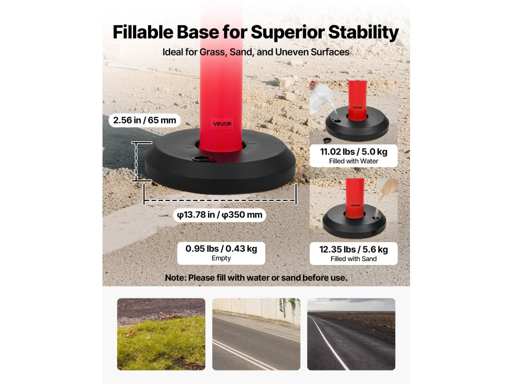 9 csomag közlekedési demarkációs oszlop újratölthető talppal