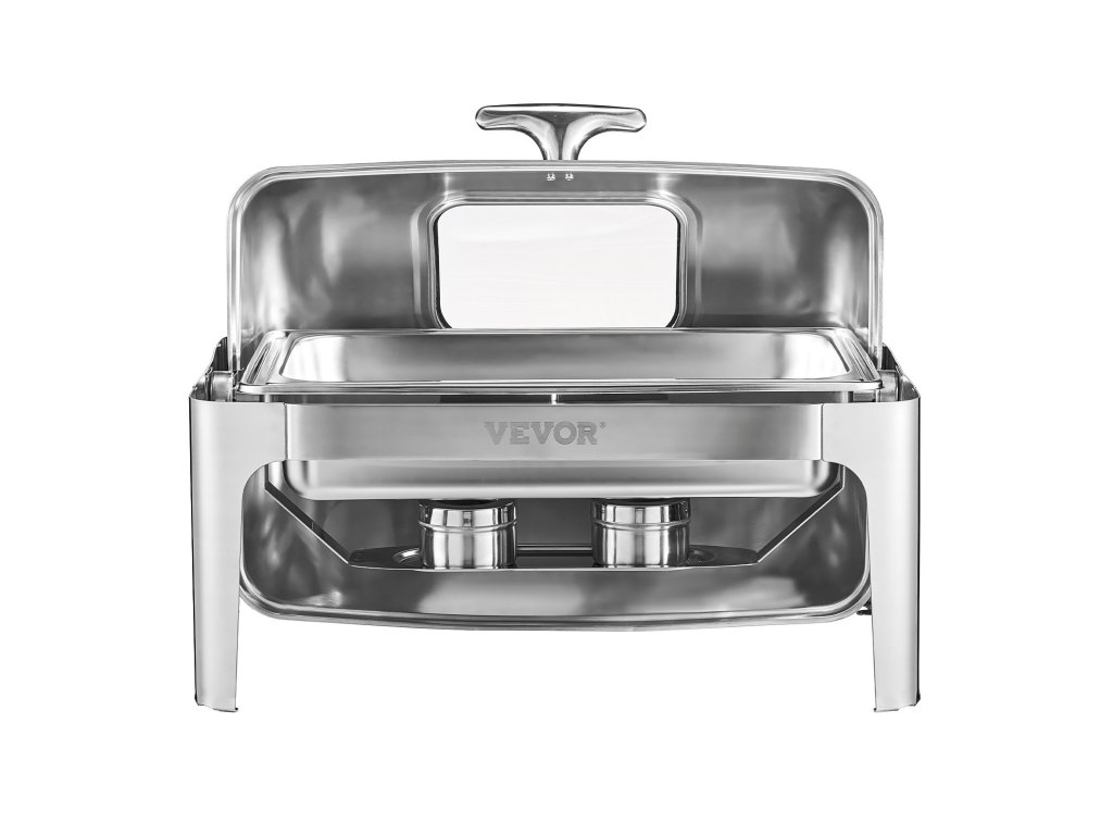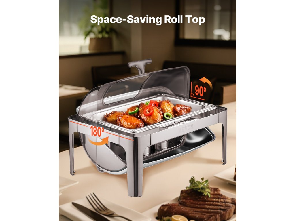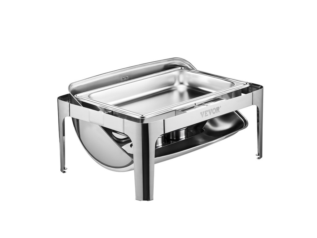 9 literes rozsdamentes acél tálalóvédő, 2 féltálca, összecsukható állvány
